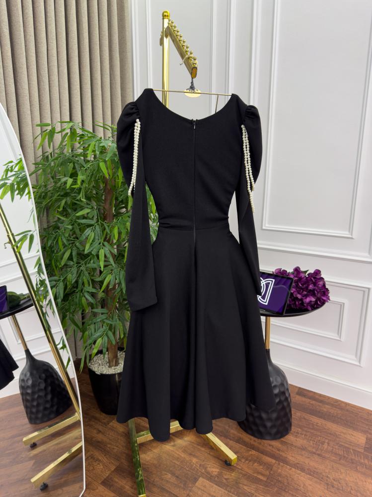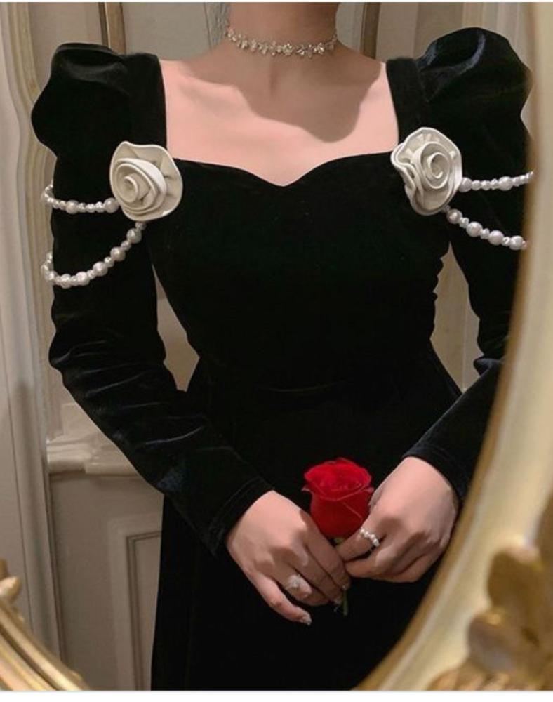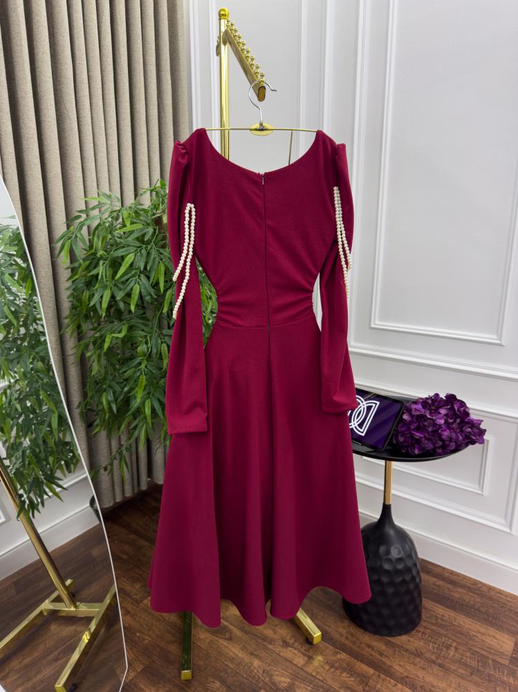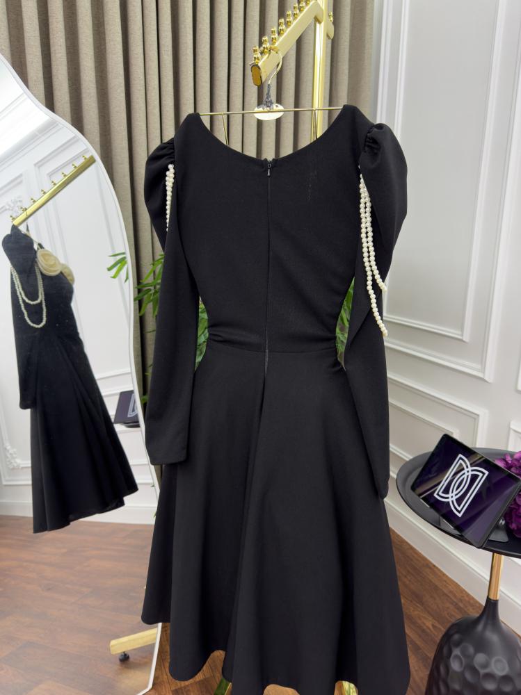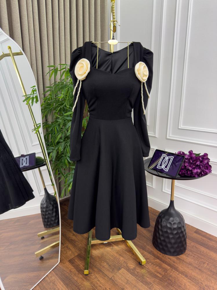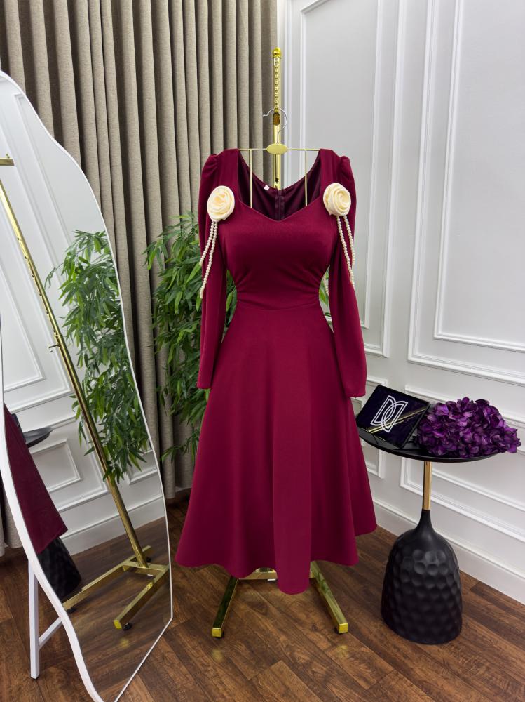فستان اسود و عنابي لكرا و ورد لولو