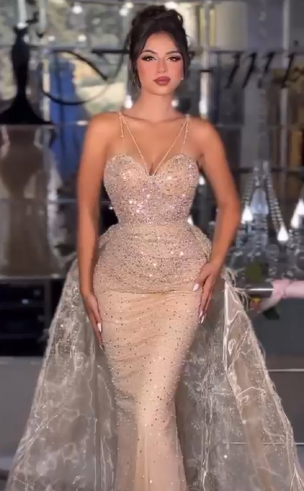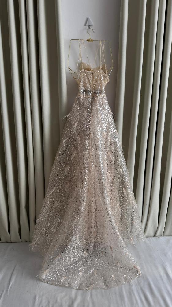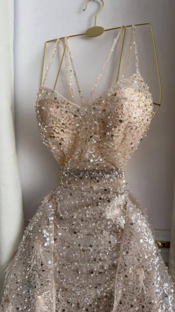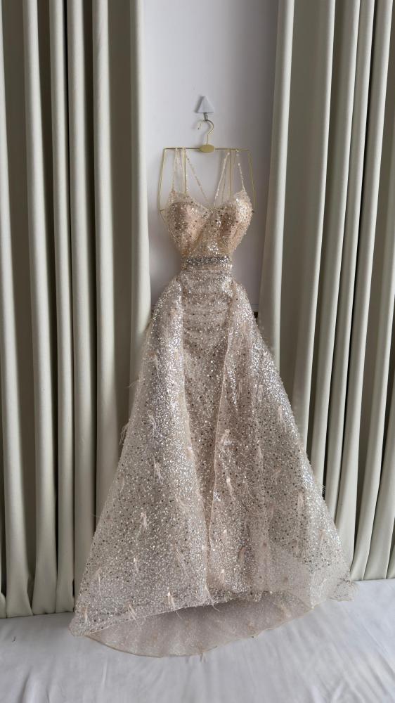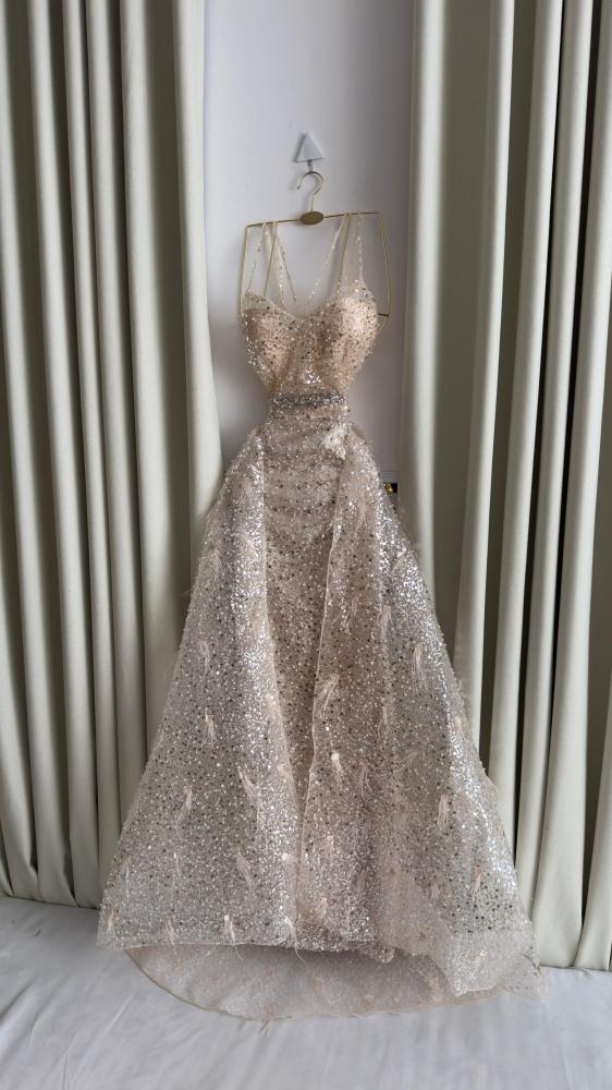 فستان سهره اللون بيج خرز كردانه من متجر جوهره MN