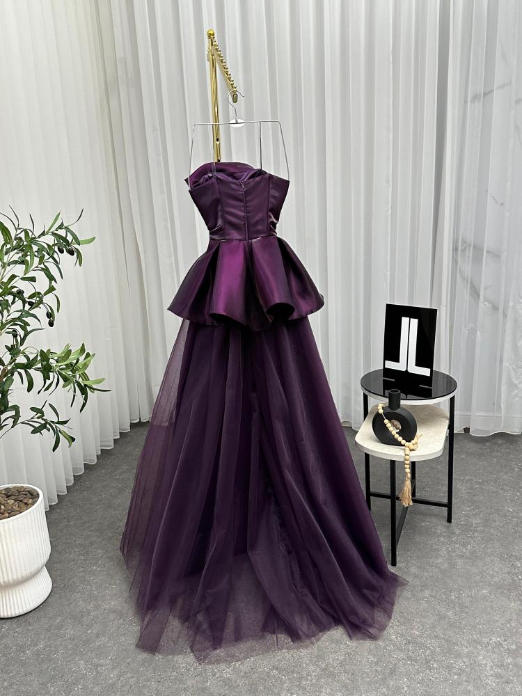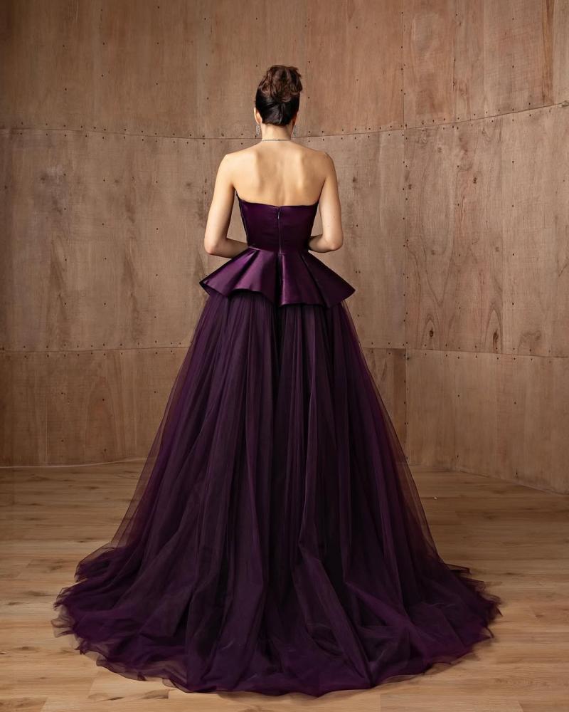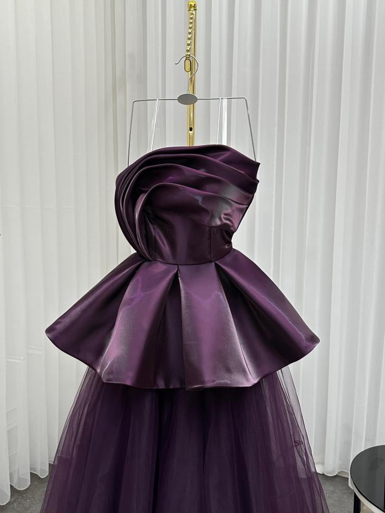 فستان سهره اللون بنفسج القماش صدريه ميكادو لمعه تنوره تل LA