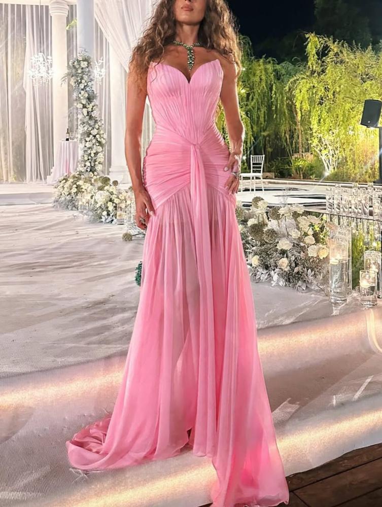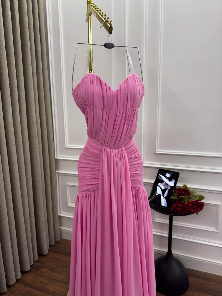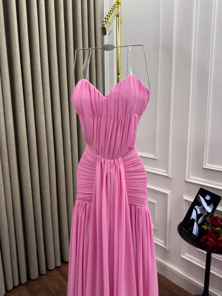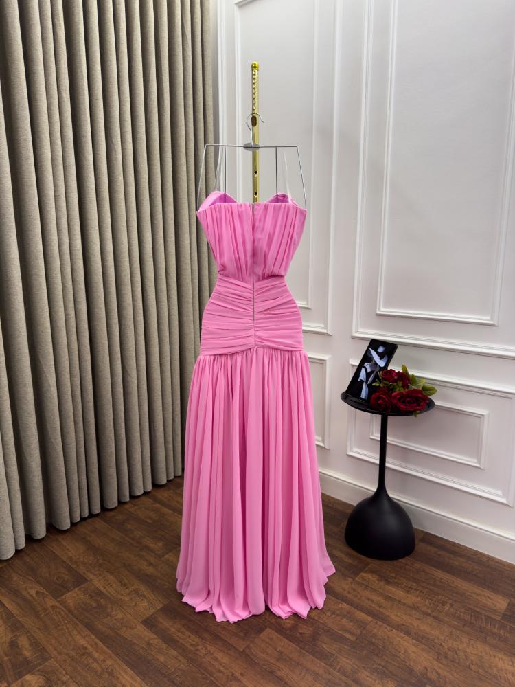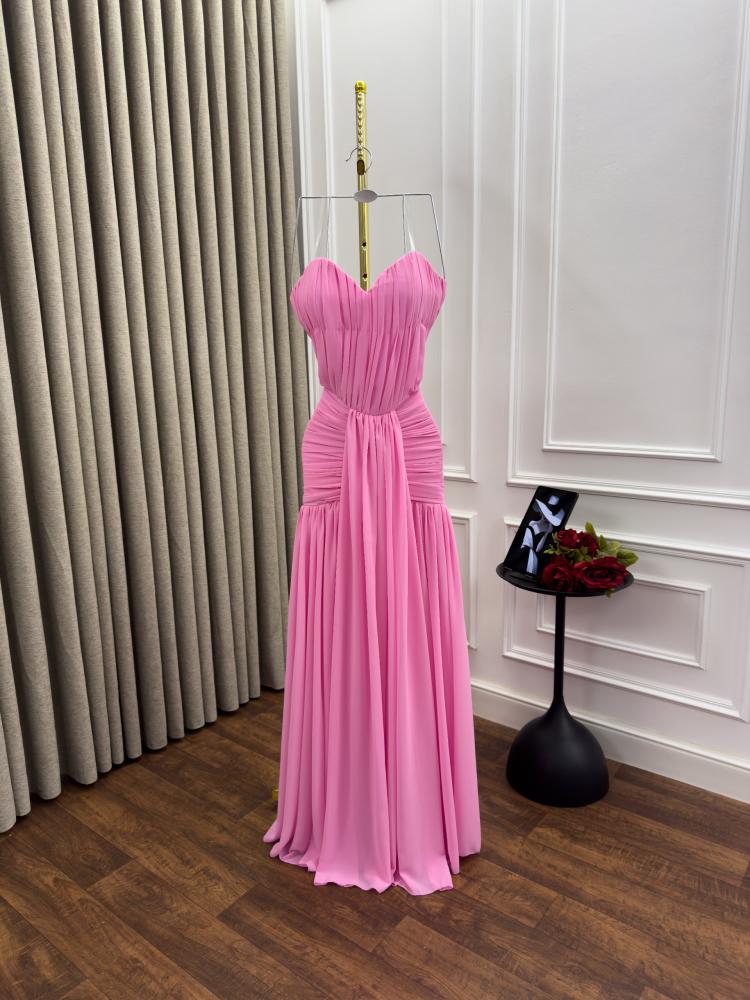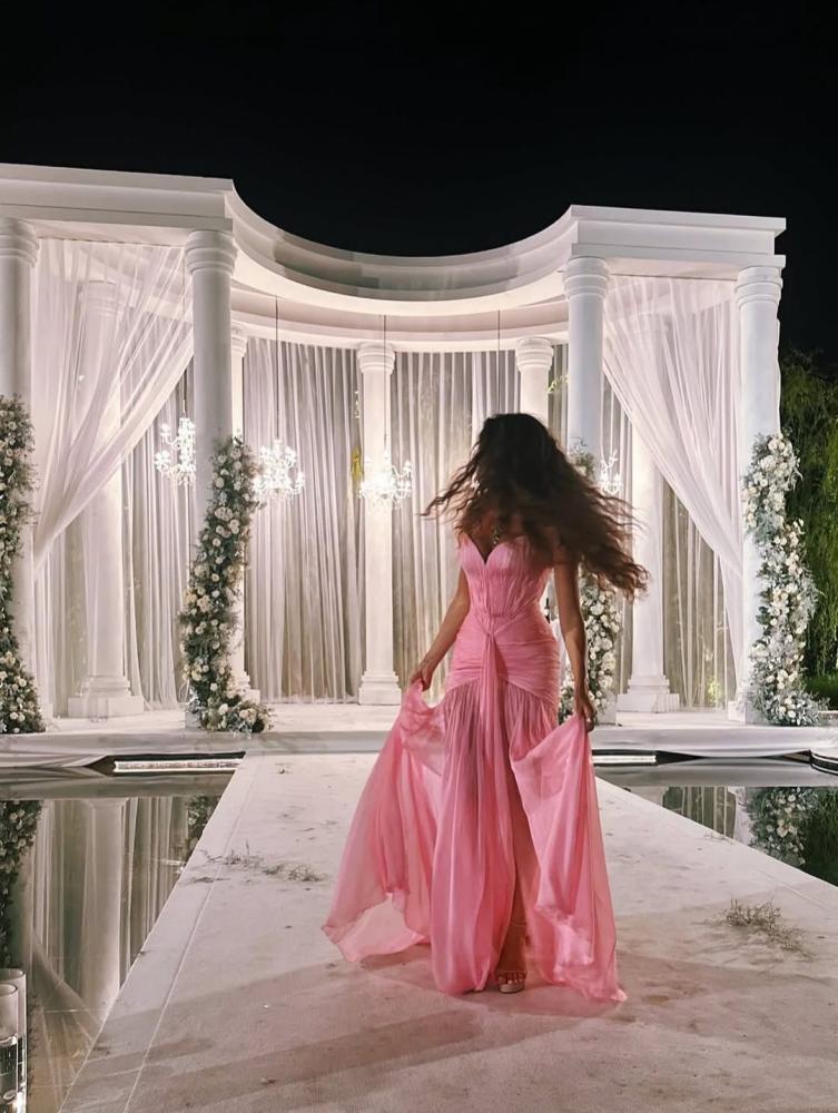 فستان سهره اللون وردي الخامه شيفون جورجيت دبل كلوش من متجر جوهره JR