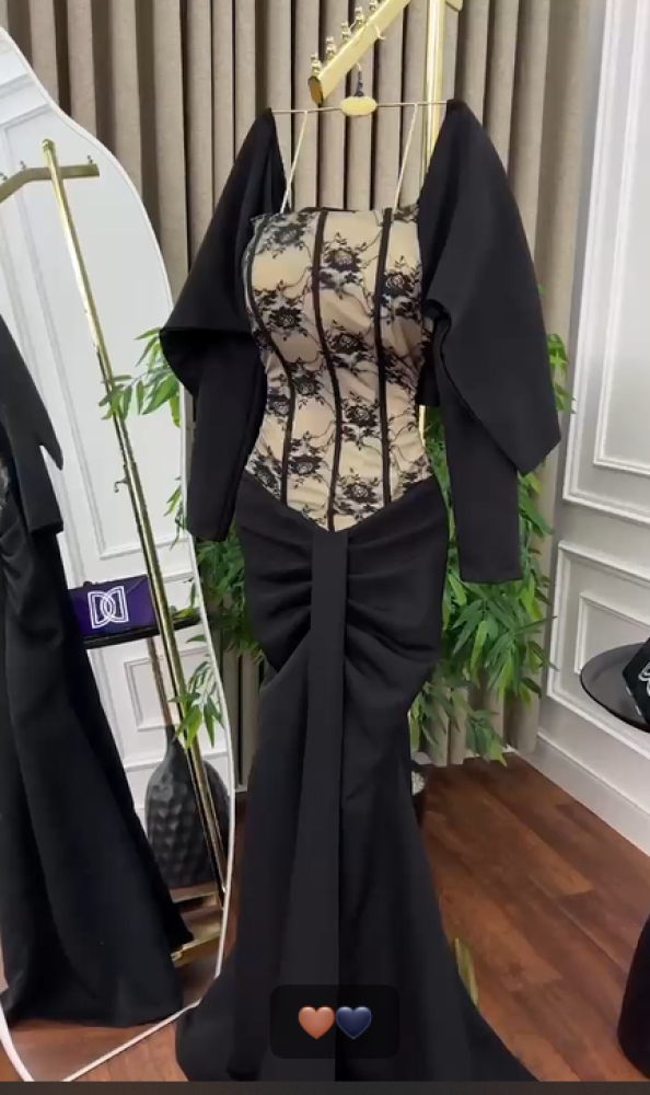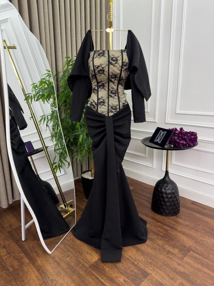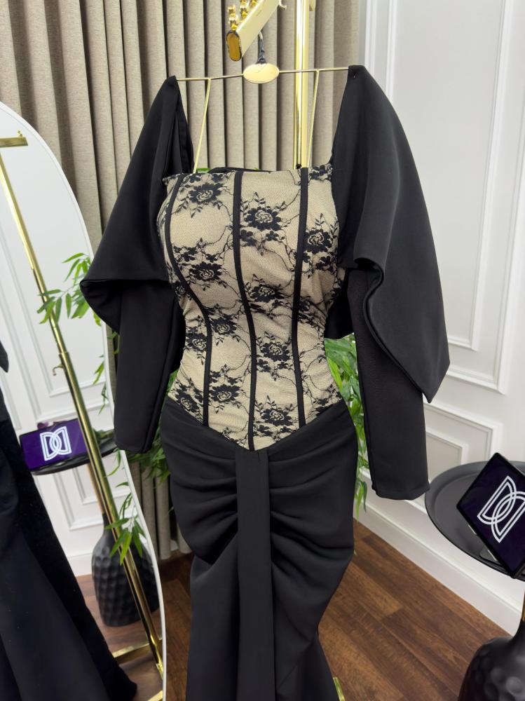 فستان سهره اللون اسود باربي الصدر دانتيل من متجر جوهره D
