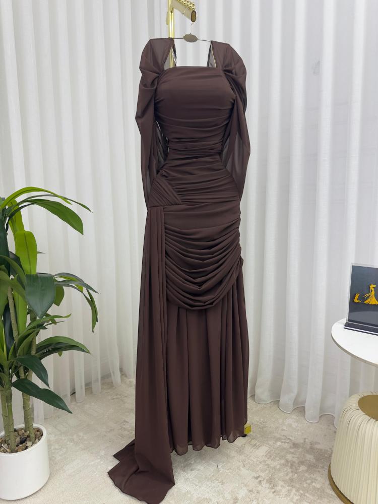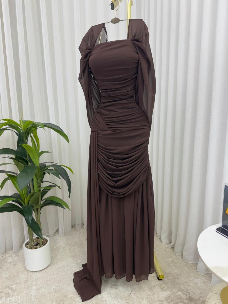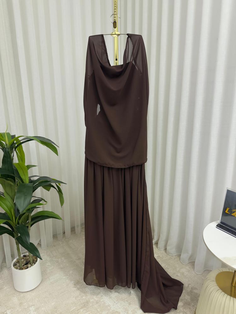 فستان سهره اللون بني الخامه جورجيت من متجر جوهرهLV