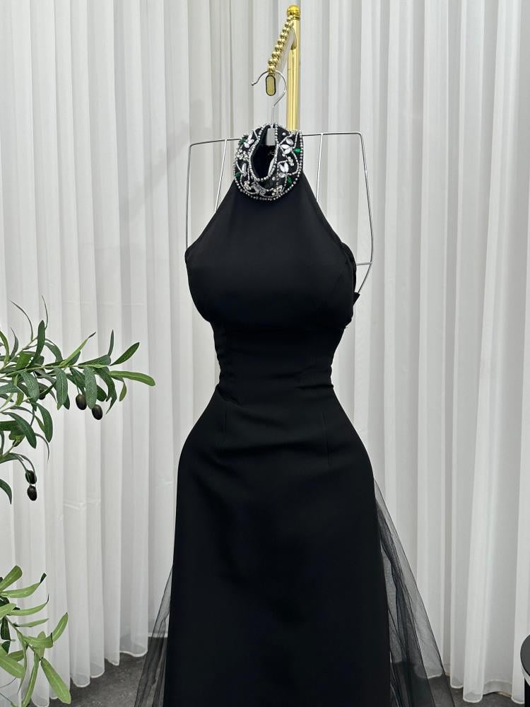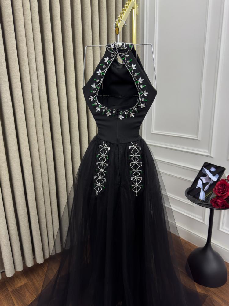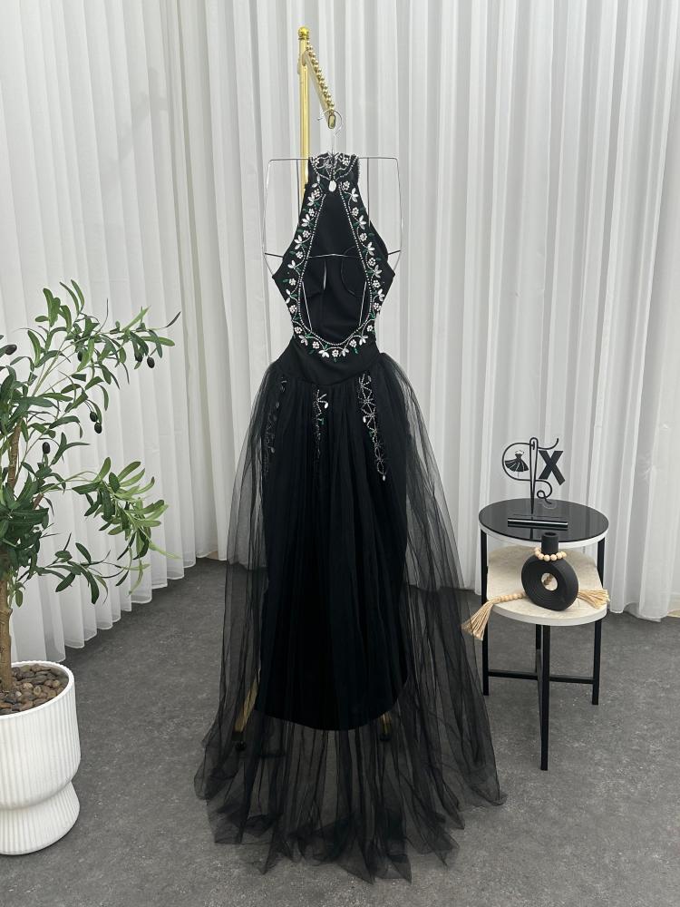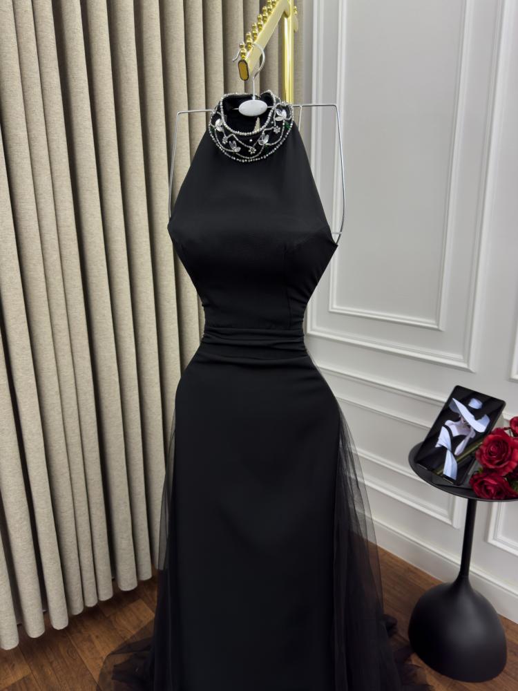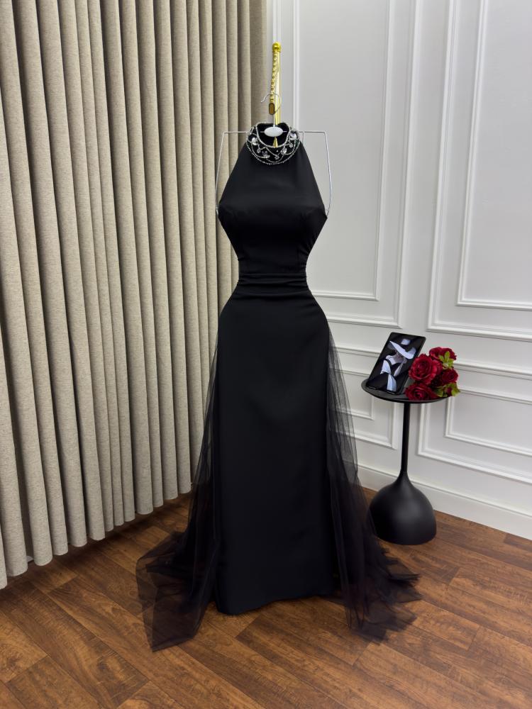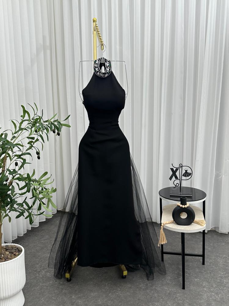 فستان سهره اللون اسود الخامه كريب باربي ذيل تل ناعم دبل من متجر جوهره JR