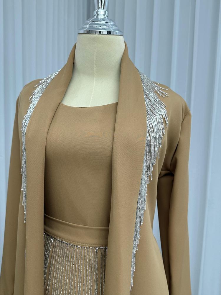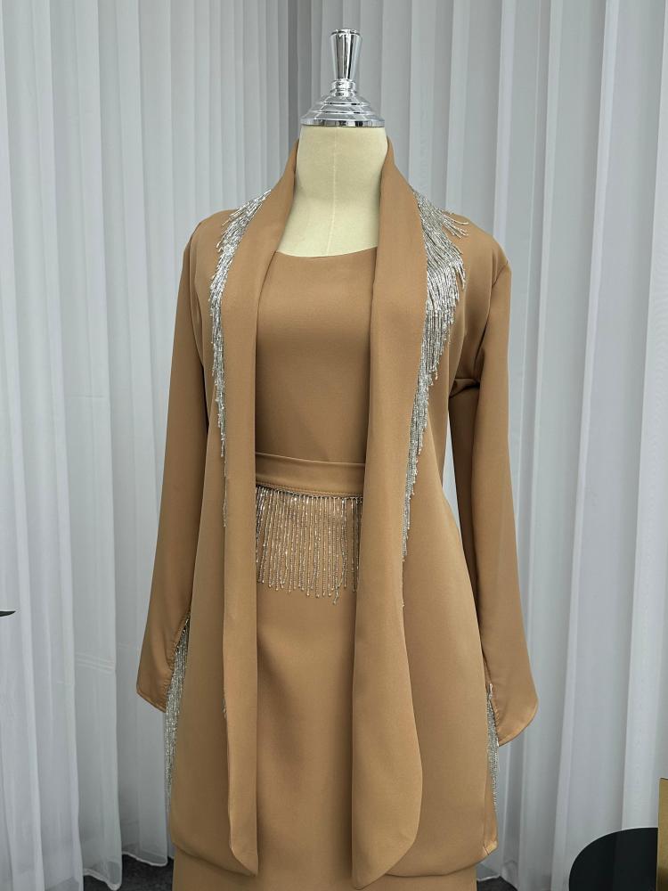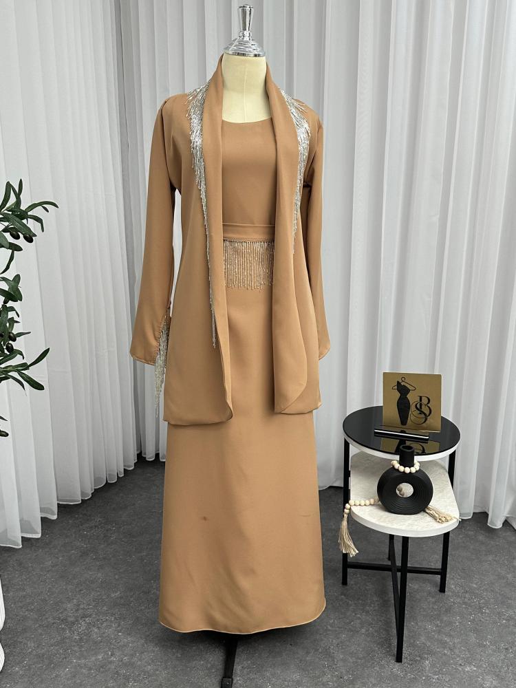 فستان ناعم لحمي مع جاكيت الخامه: باربي+ تطريز كلفه من متجر جوهره