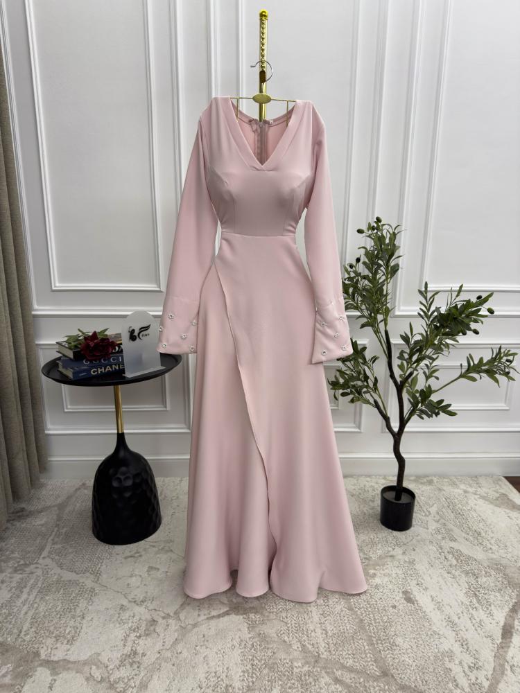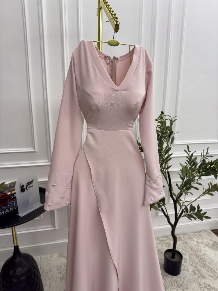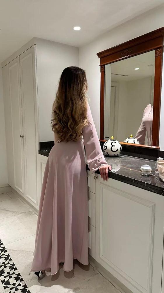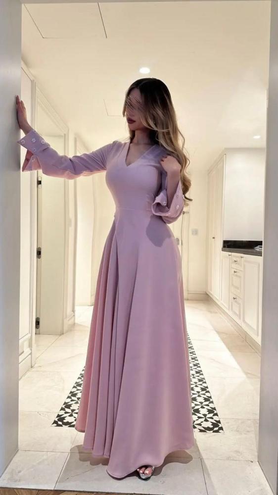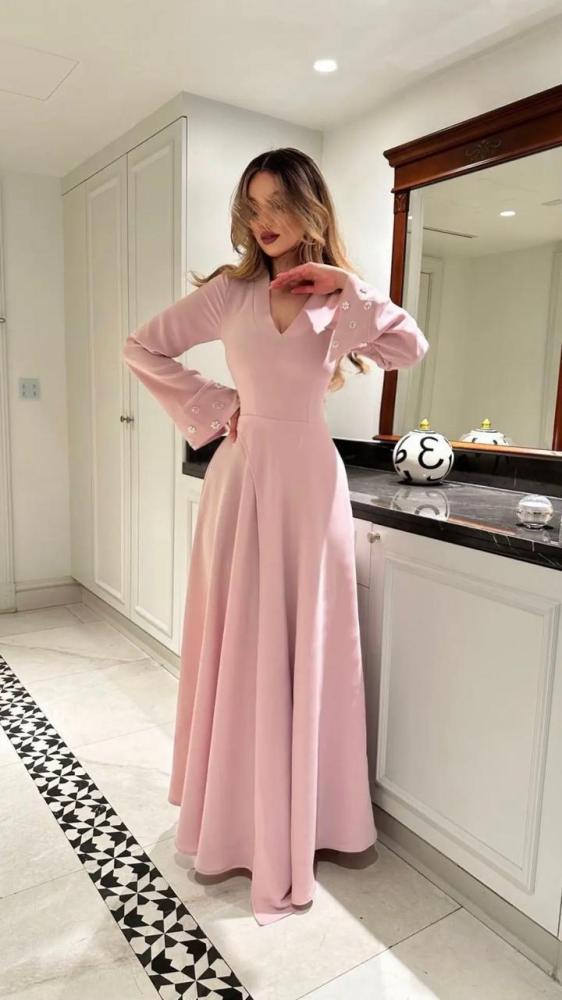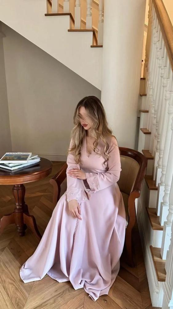 فستان ناعم طويل القماش باربي مطرز بلكم باربي . مستور صباحية العيد