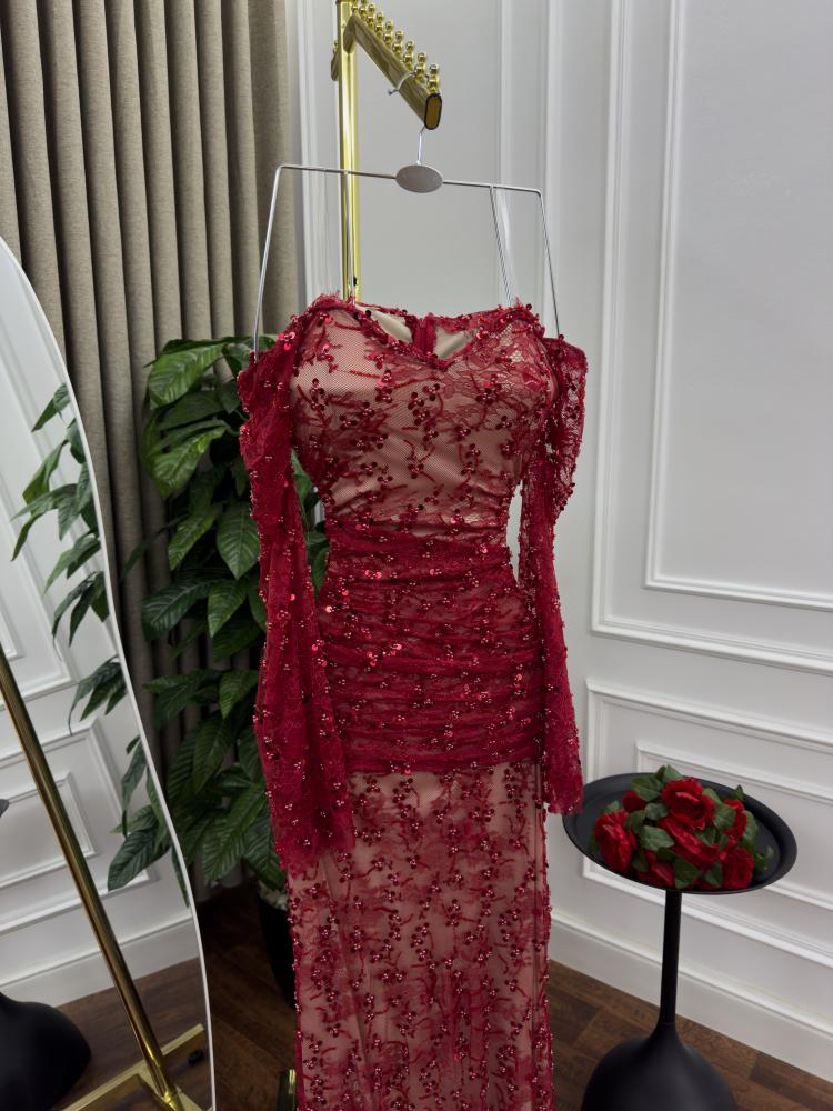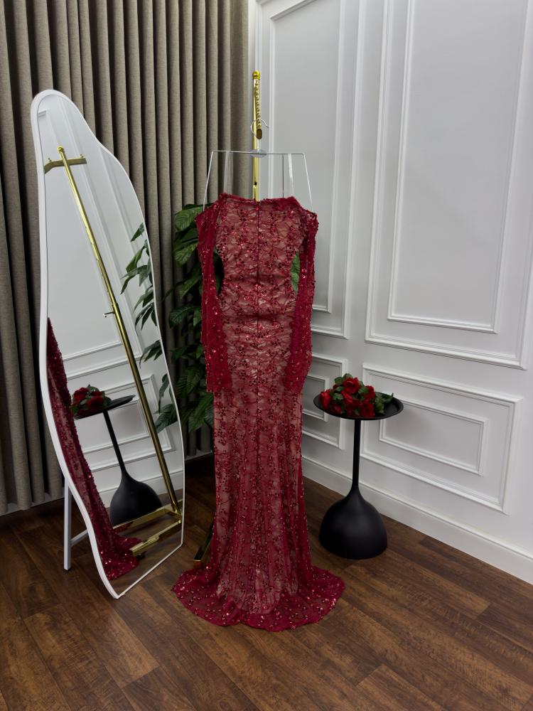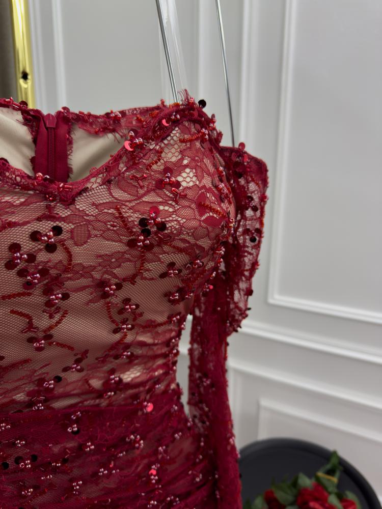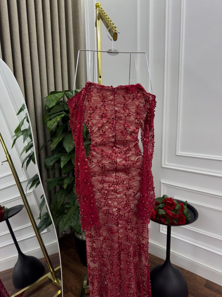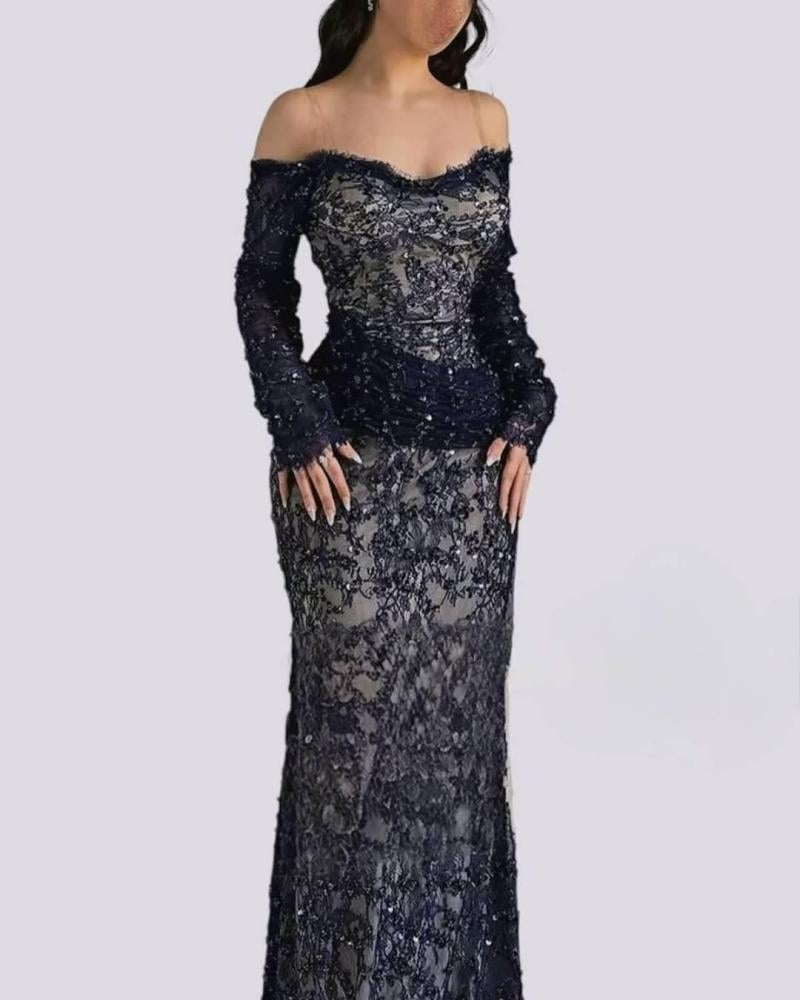 فستان سهره اللون كحلي دانتيل وخرز من متجر جوهره MN