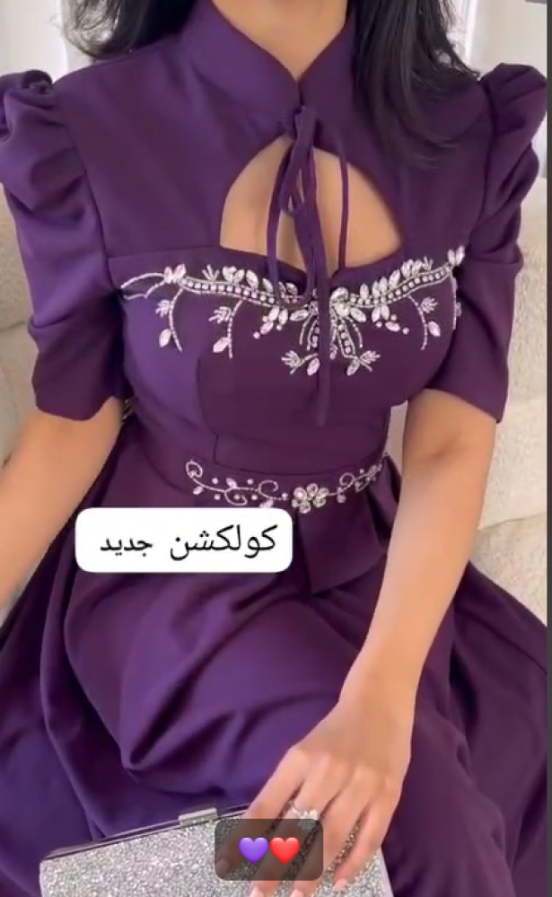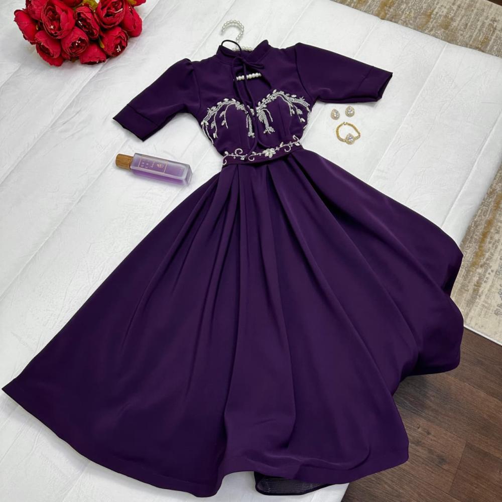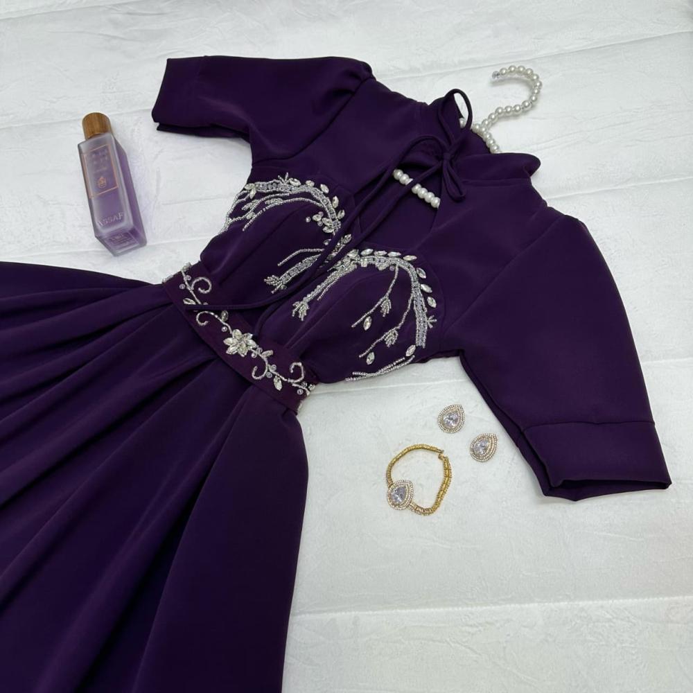 فستان اللون بنفسجي و احمر الخامه باربي تطريز يدوي من متجر جوهره BS