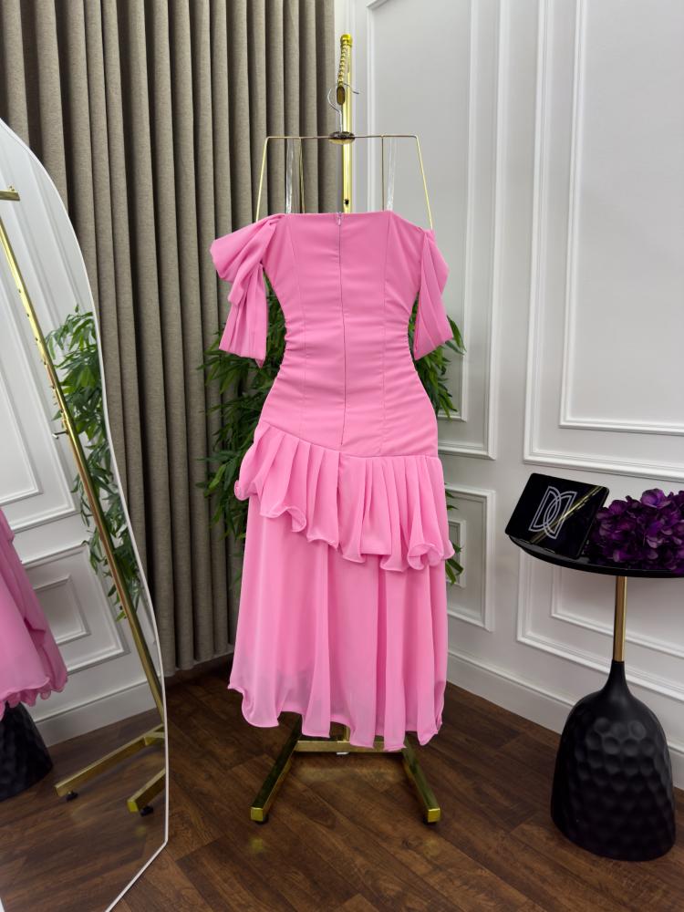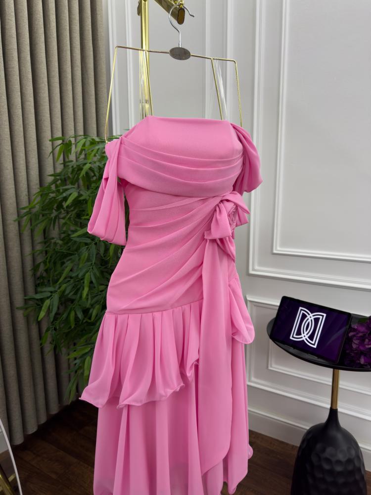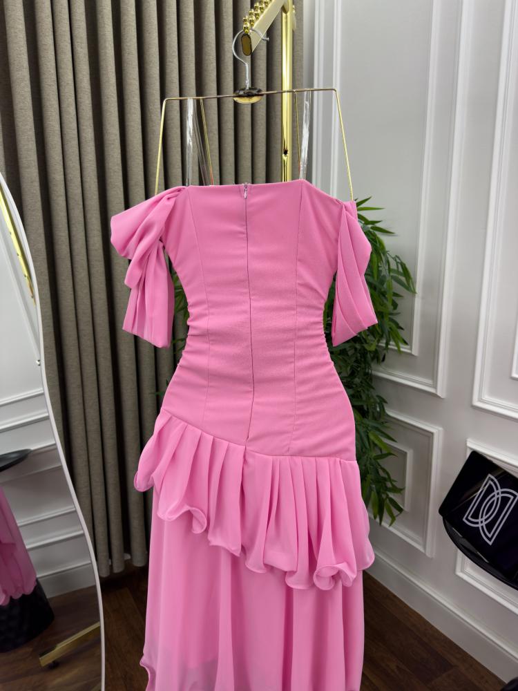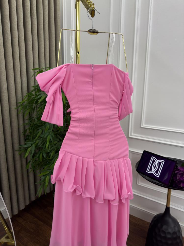فستان سهره اللون زهري خامه شيفون