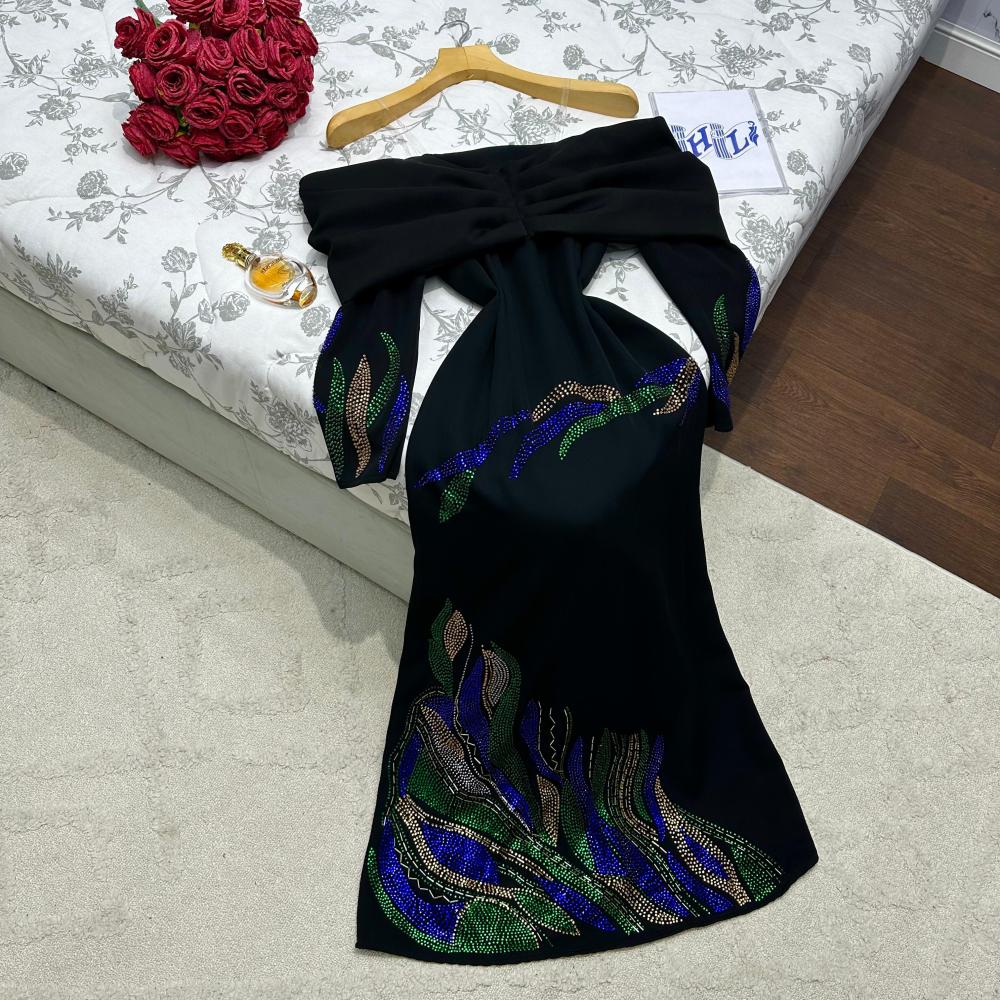 فستان اسود ماكسي مطرزي يدوي بالفصوص الخامه باربي