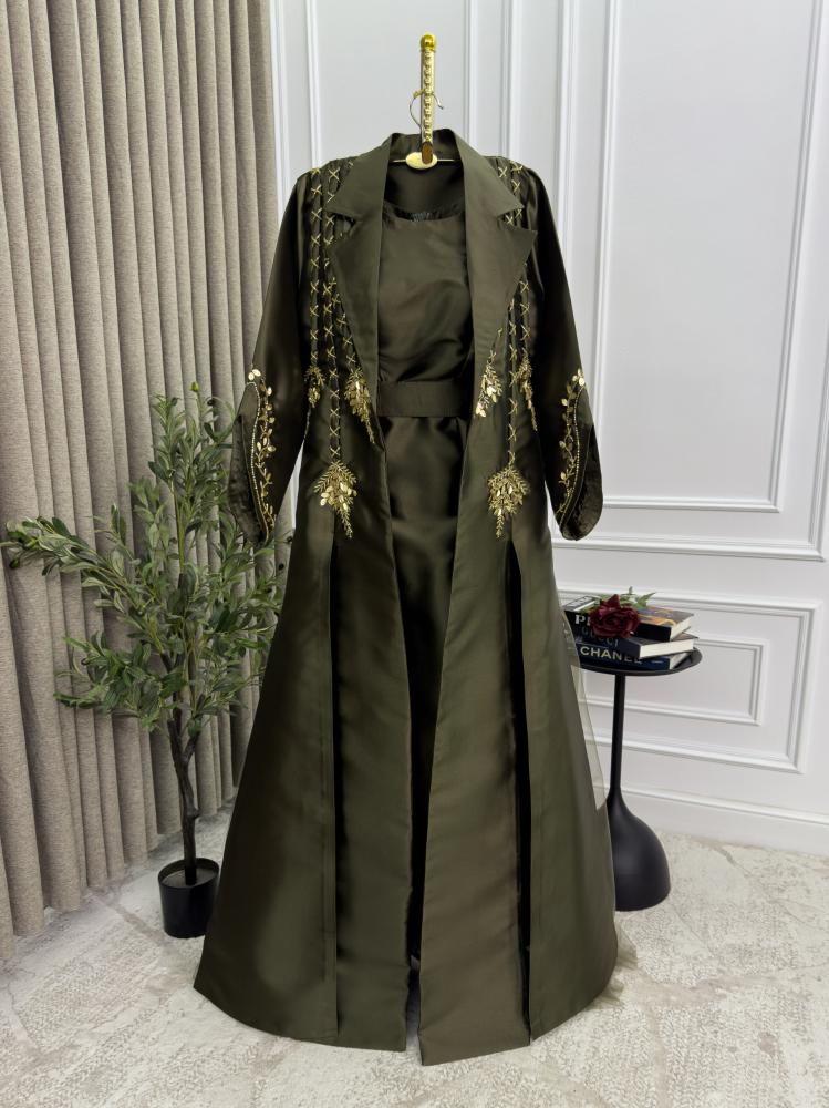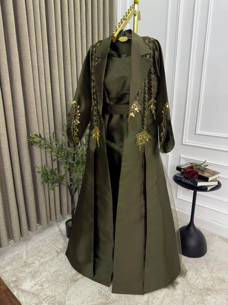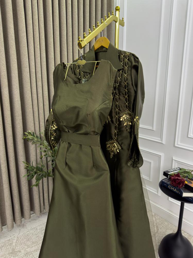 جلابيه زيتي ميكادو اصلي درجه اولى بتطريز يدوي راقي