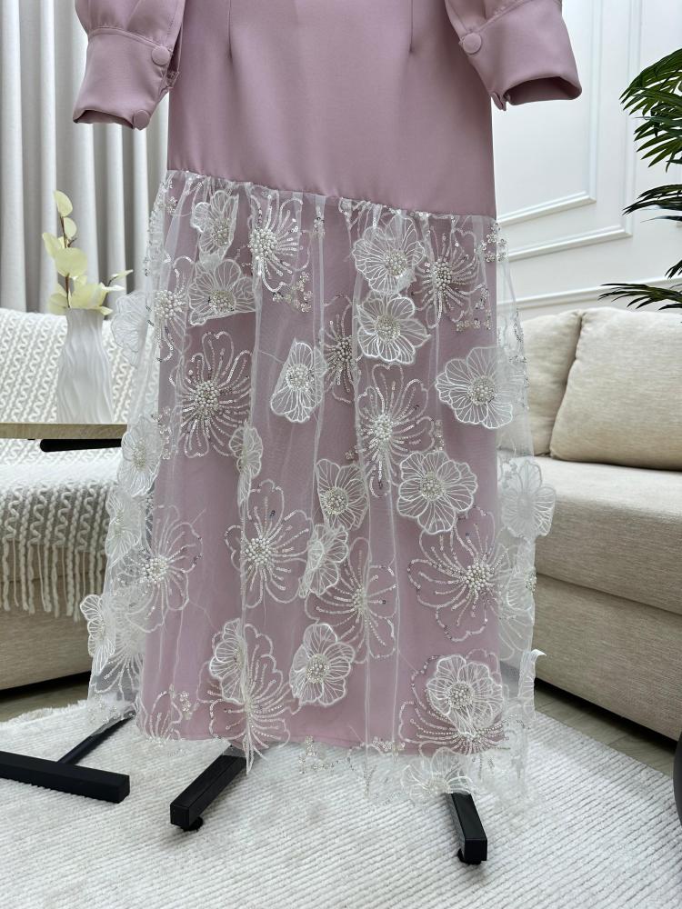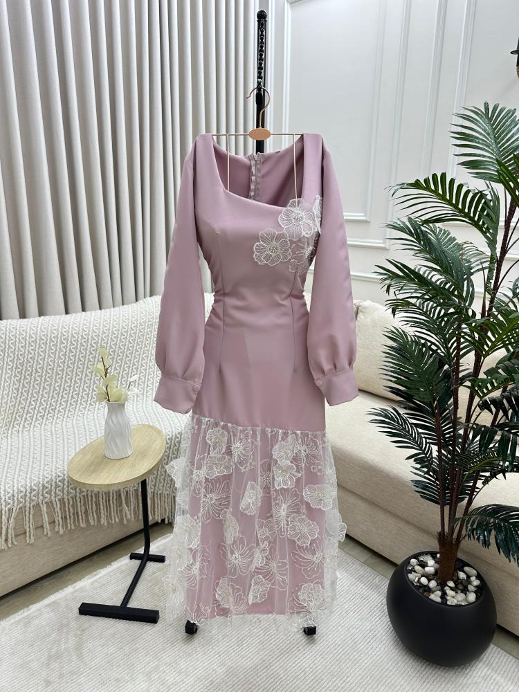 فستان لحمي ميدي بخامه باربي مزين بورد