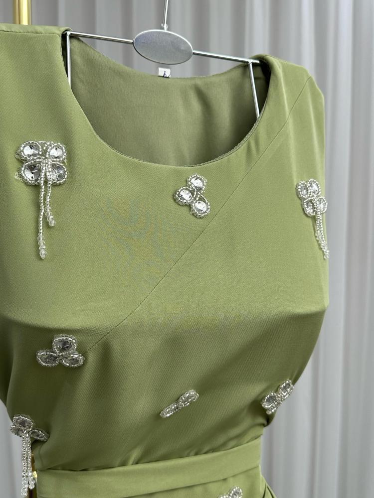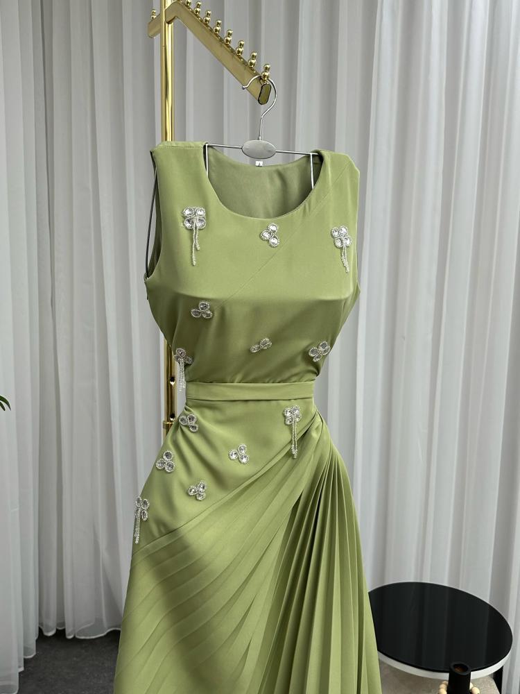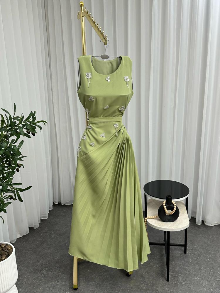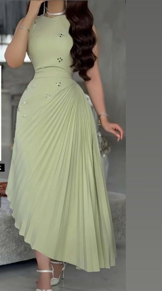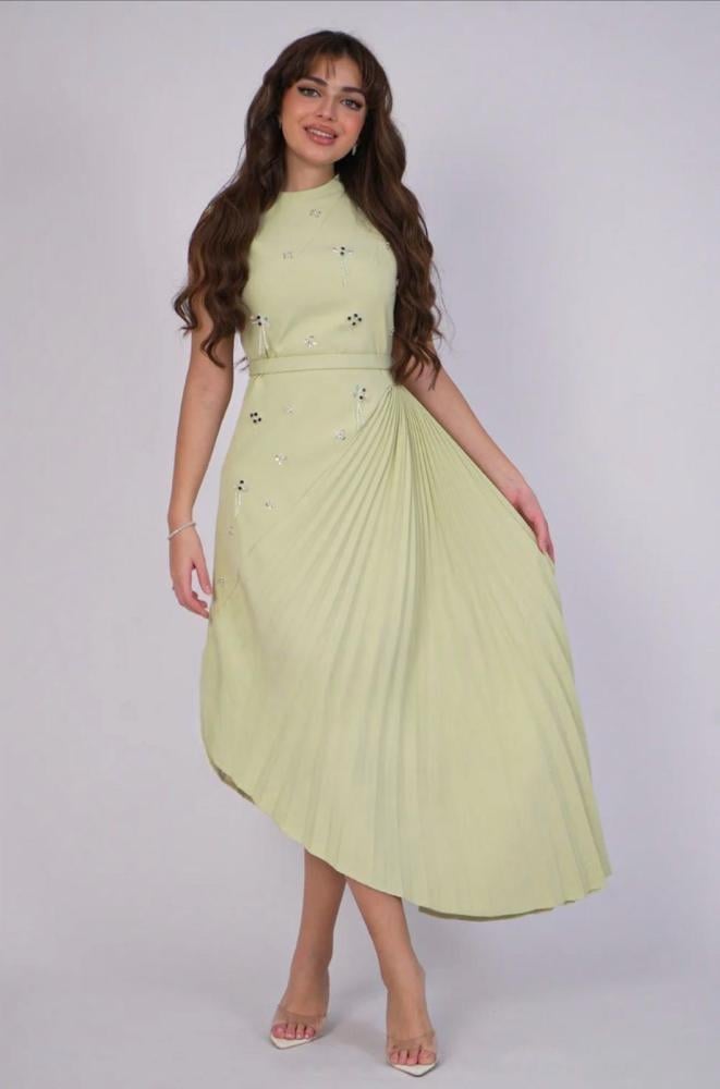 • لون الفستان : بستاشيو تفاحي - ابيض