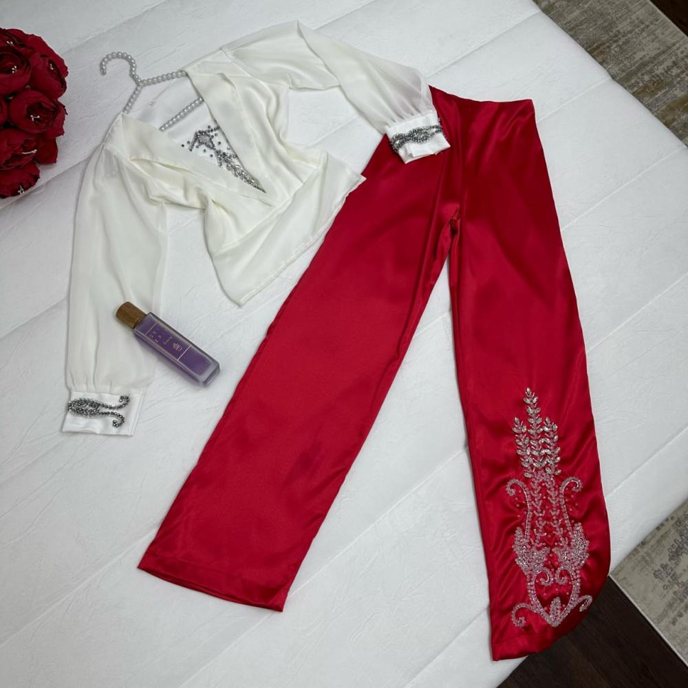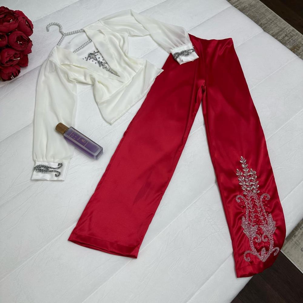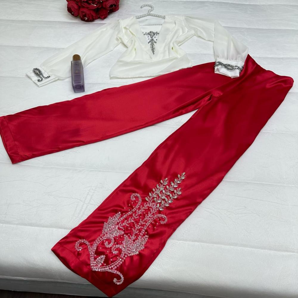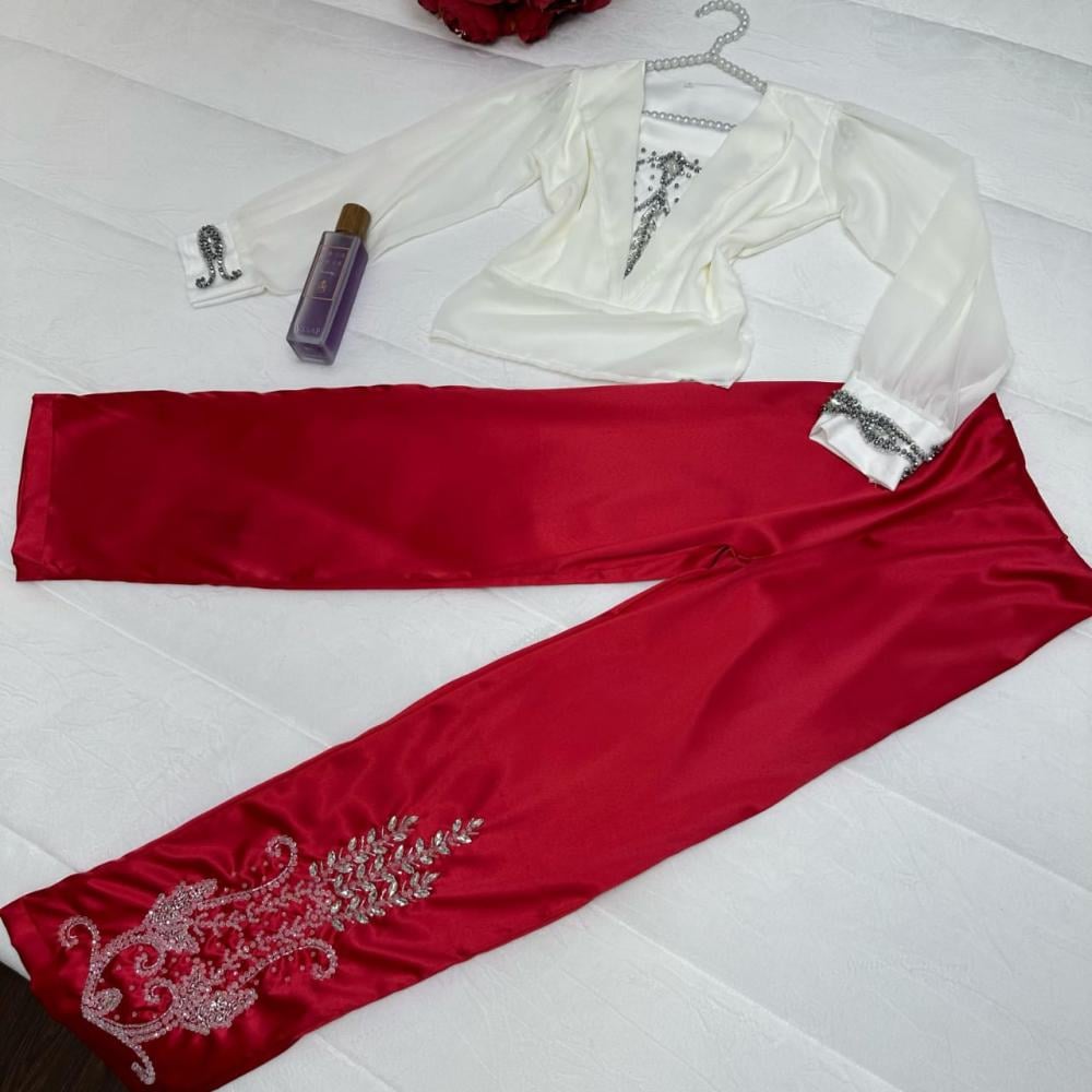 قطعتين بلوزه و بنطلون راقي الخامه.. تفته .. تطريز يدوي راقي على القماش الاصلي
