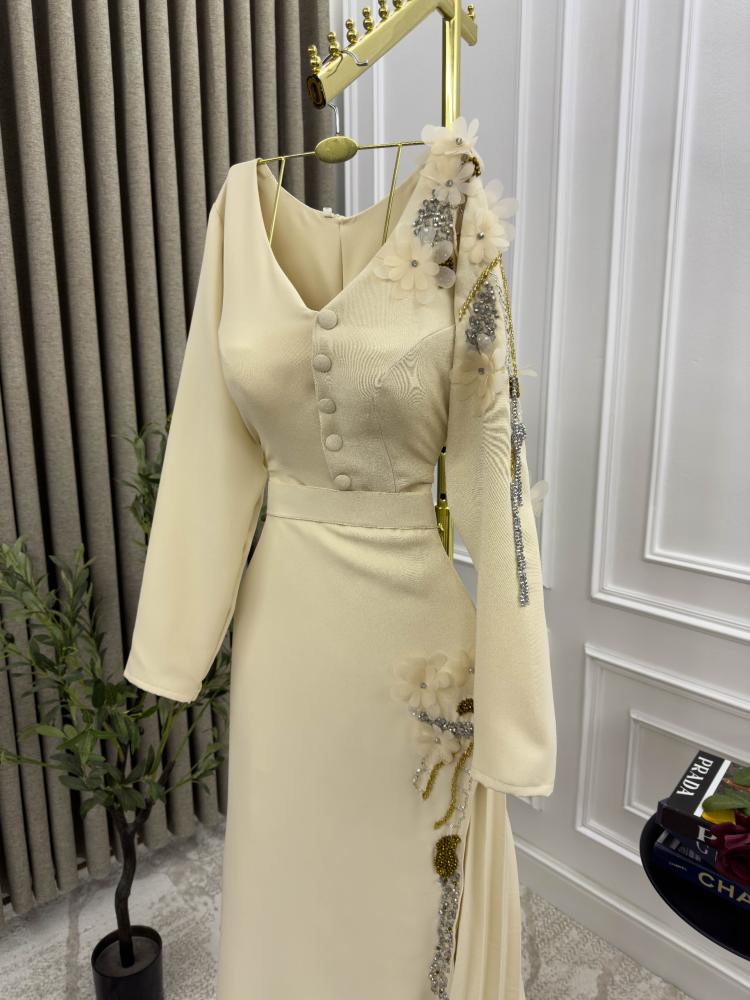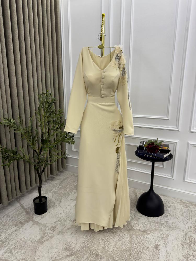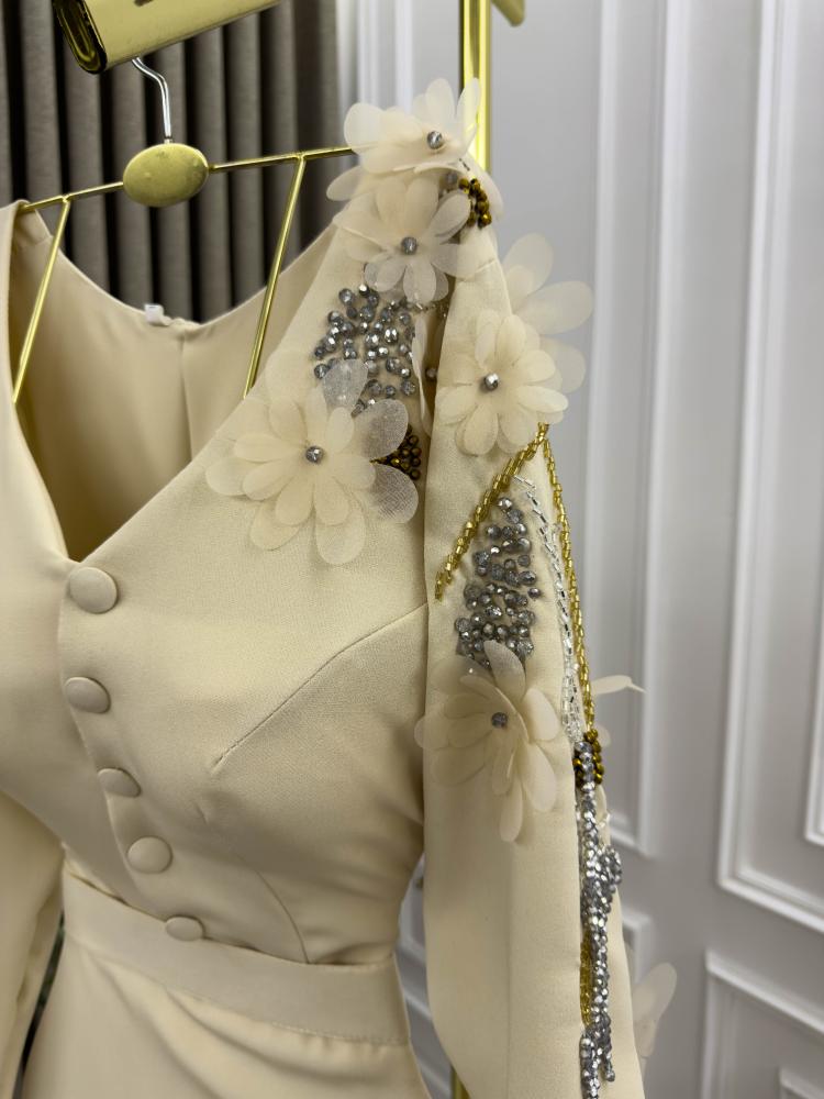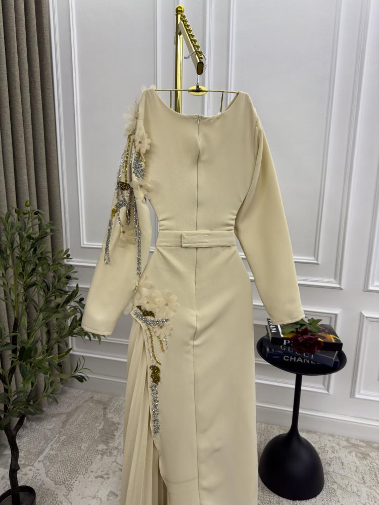 فستان باربي اصلي درجه اولى بتطريز يدوي راقي اللون بيج