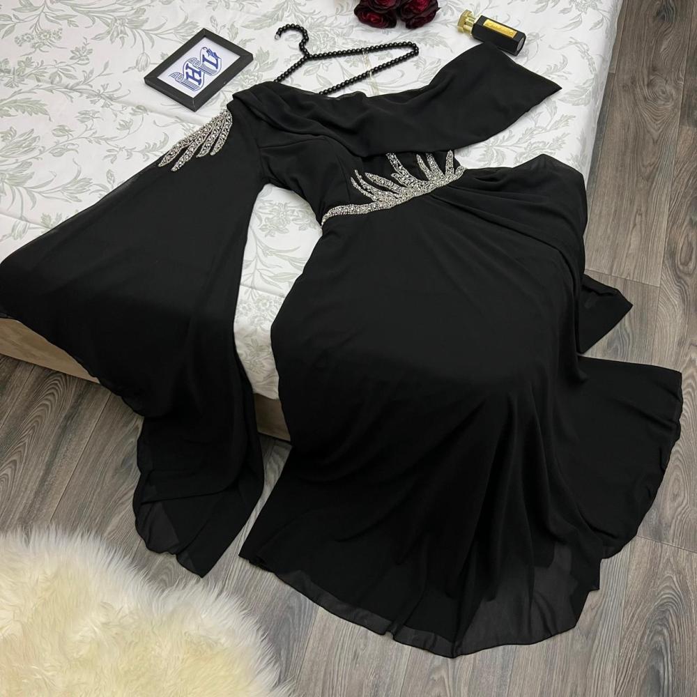 فستان خامه الشيفون جورجيت مطرز بالفصوص على الكم و الخصرالالوان : لحمي ازرق ابيض اسودالمقاسات : S M L XL XXL XXXLعند الطلب كتابه ملاحظه باللون المطلوب