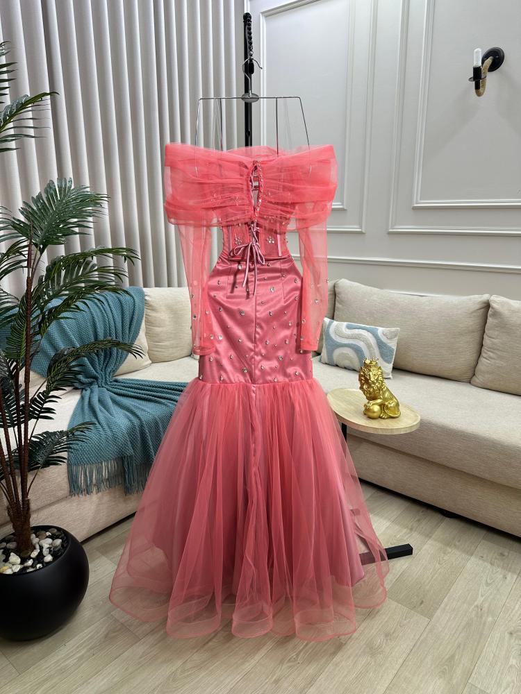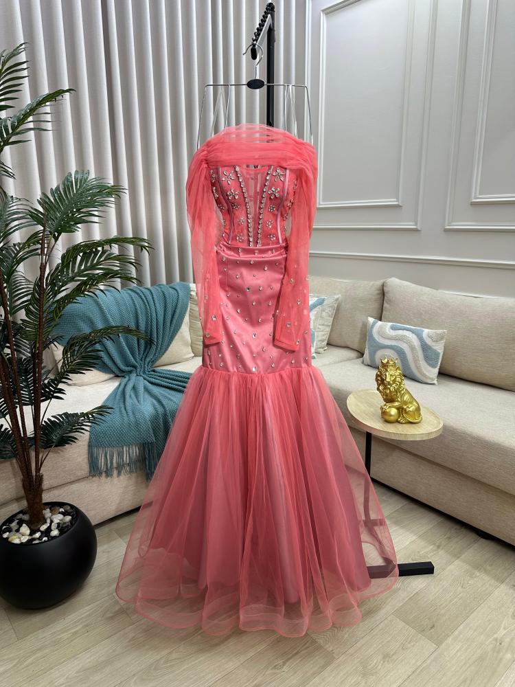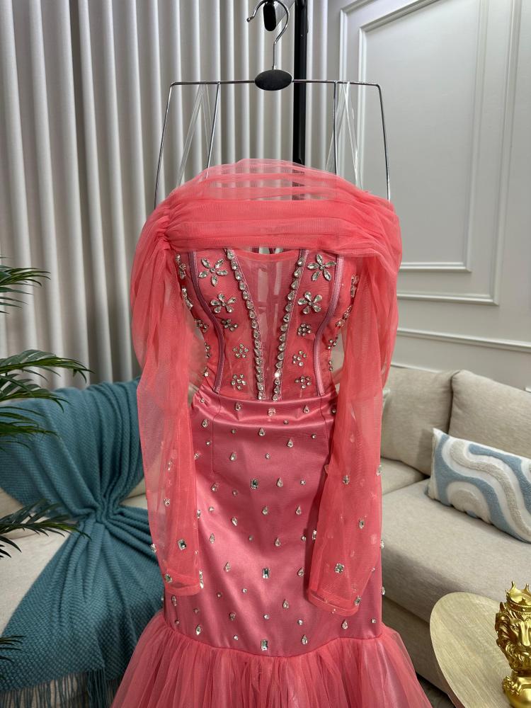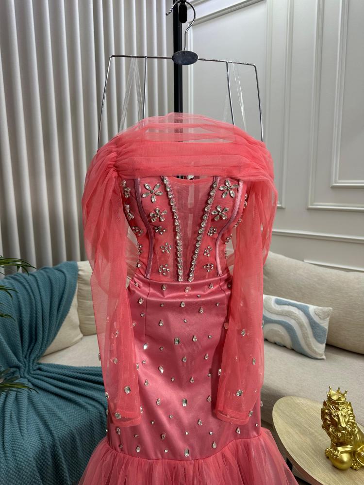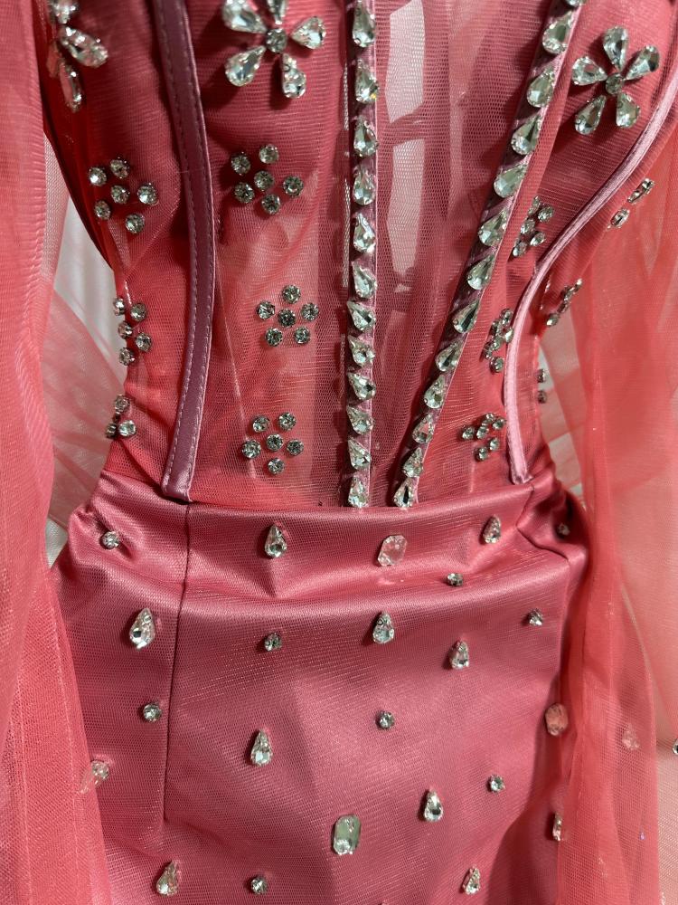 فستان سهره اللون بنكي تل اصلي درجه اولى تطرير راقي من متجر جوهره TR