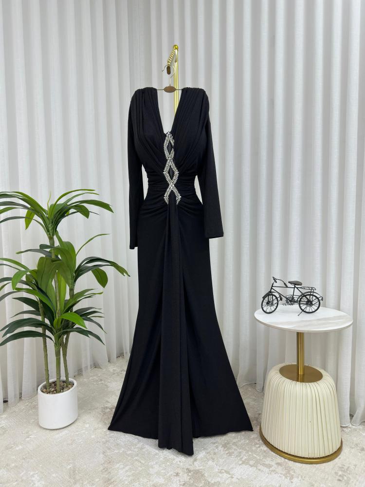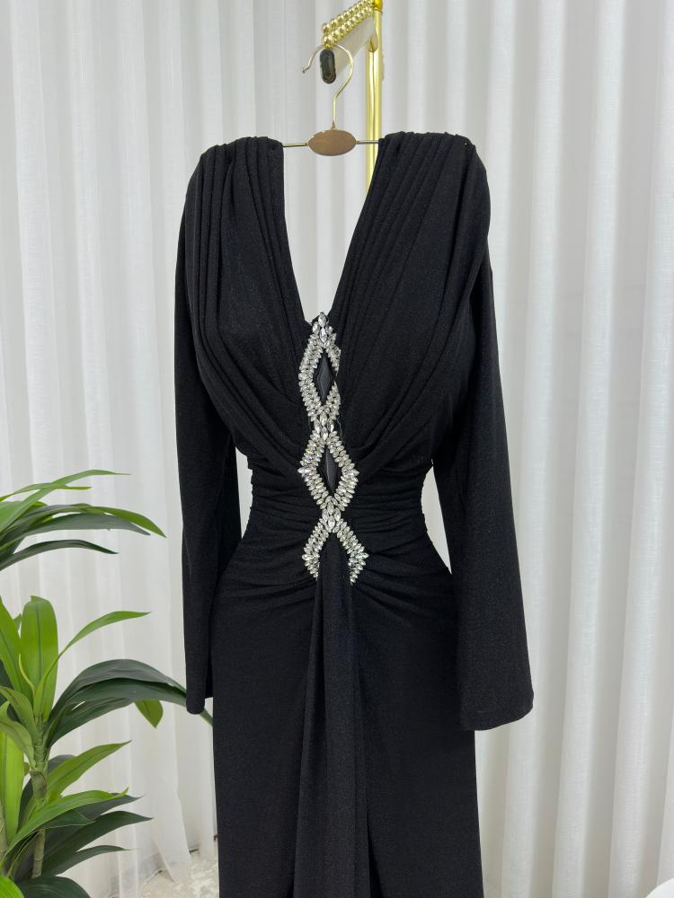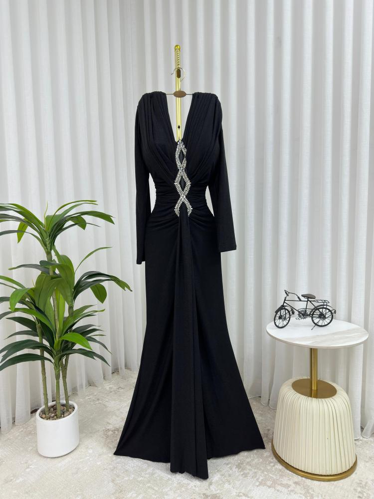 فستن سهره اللون اسود فــسـتان القماش جرسي فاخر ملمس ناعم مطاط من متجر جوهره AR