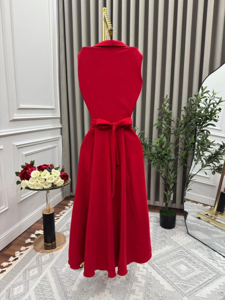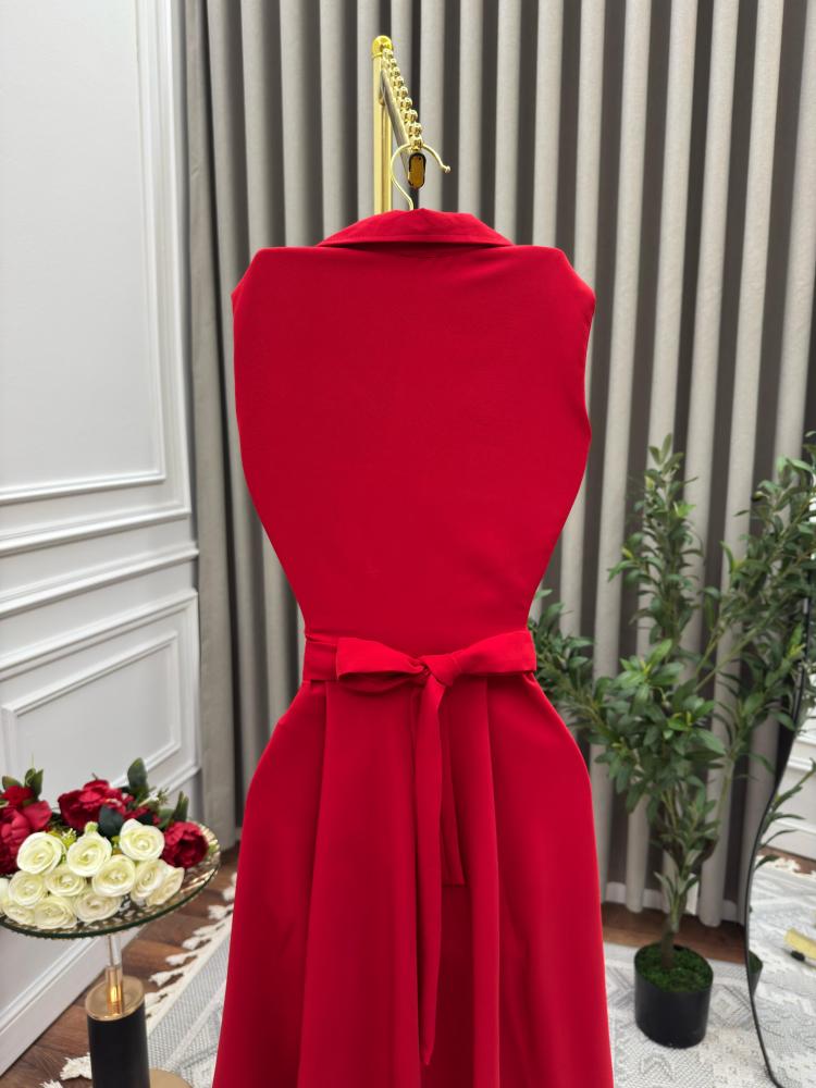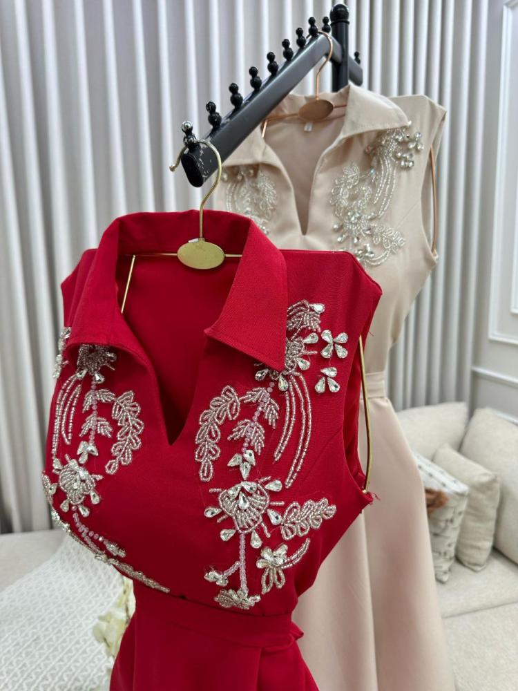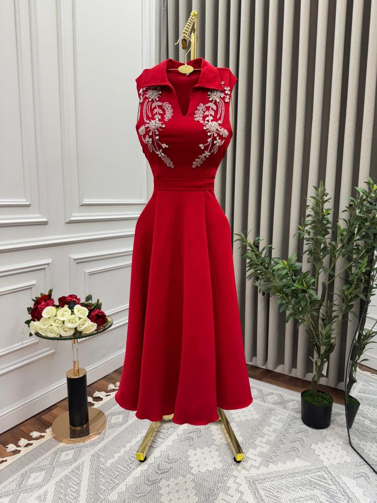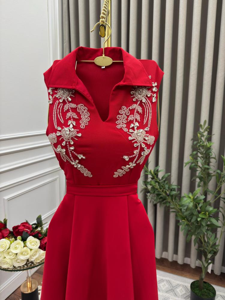 فستان ناعم اللون احمر خامه باربي وتطريز يدوي