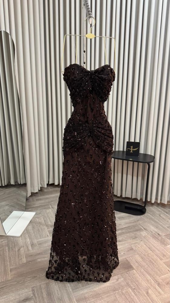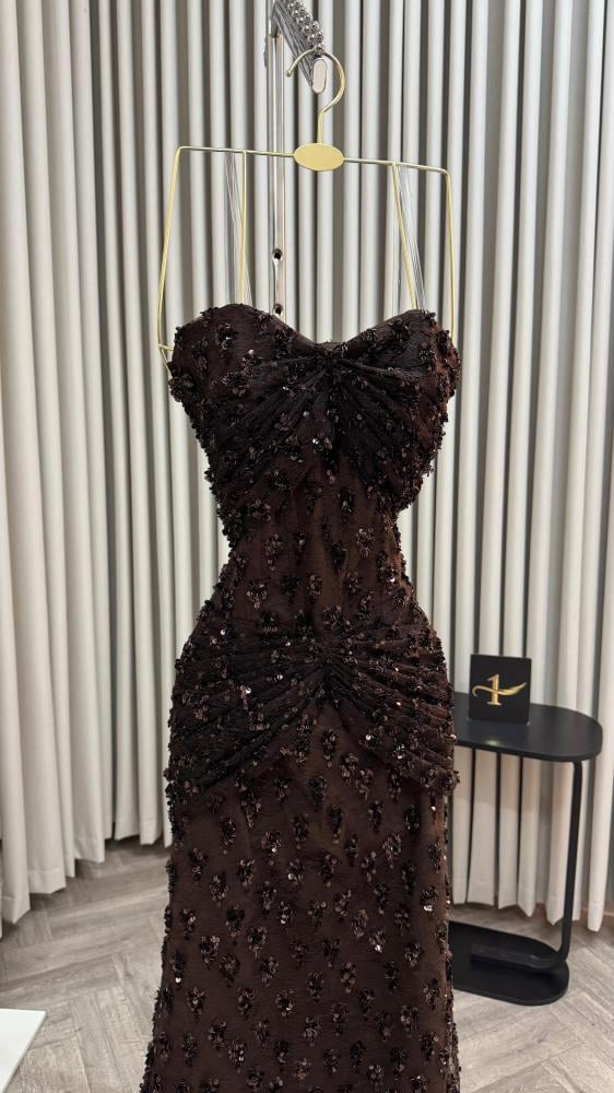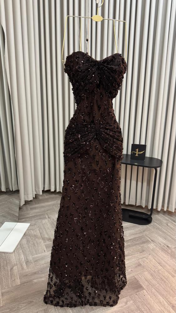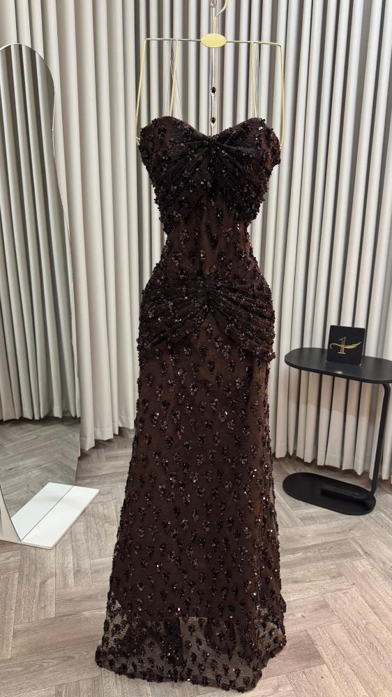 فستان سهره اللون بني قماش سهره من متجر جوهره NO HR