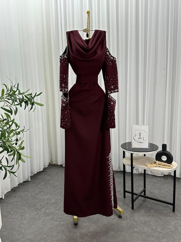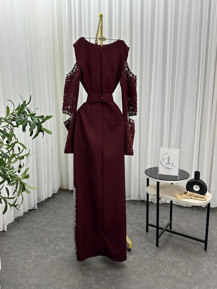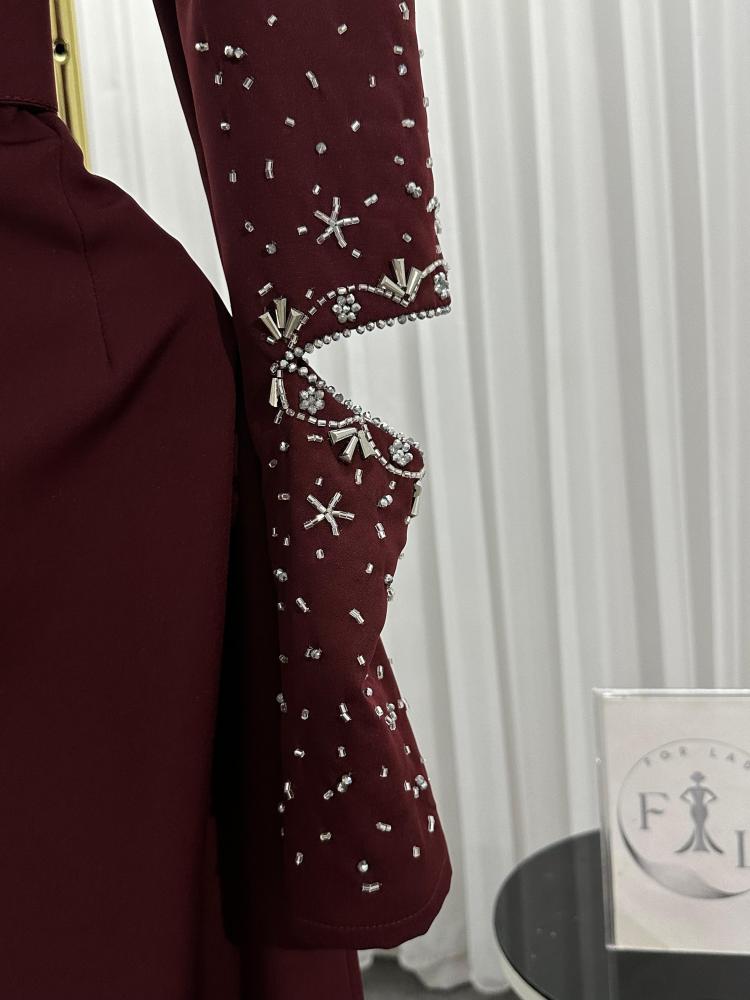 فستان سهره اللون برغندي فستان سهرة نوع القماش باربي تطريز يدوي من متجر جوهره D