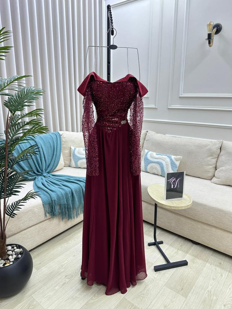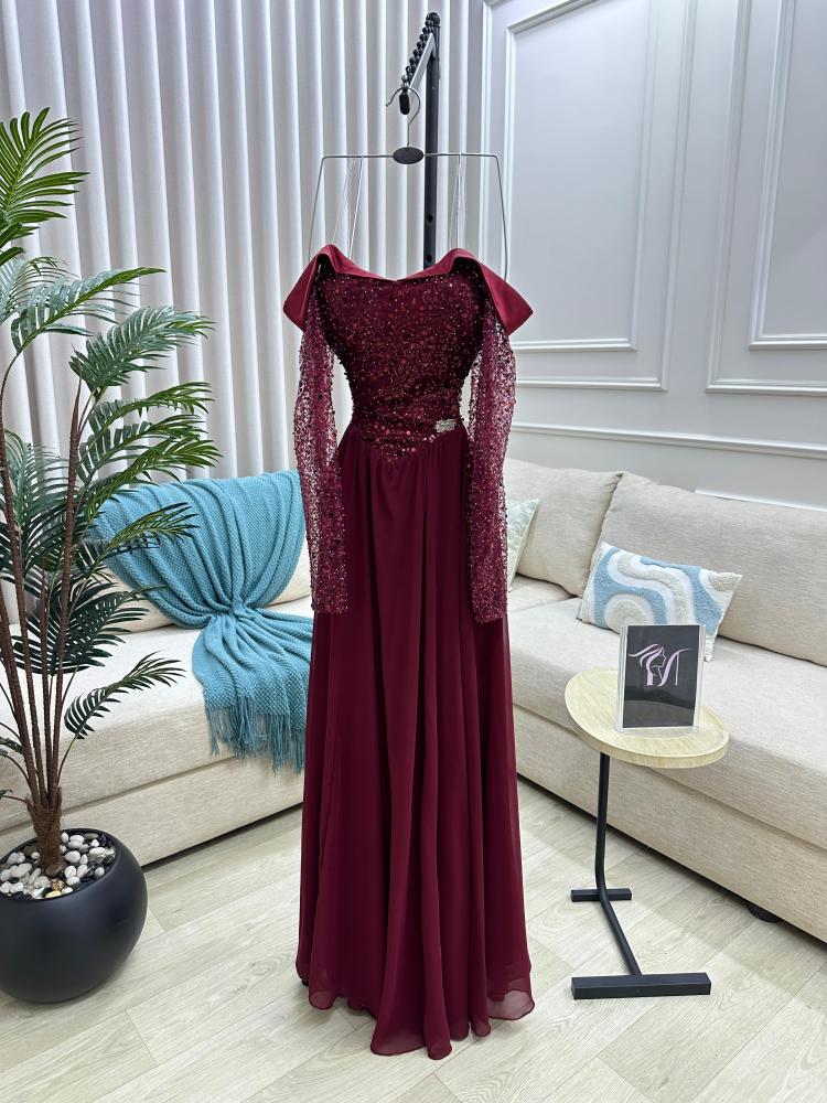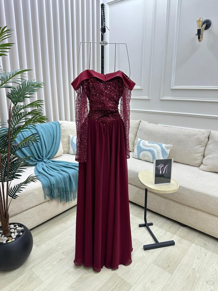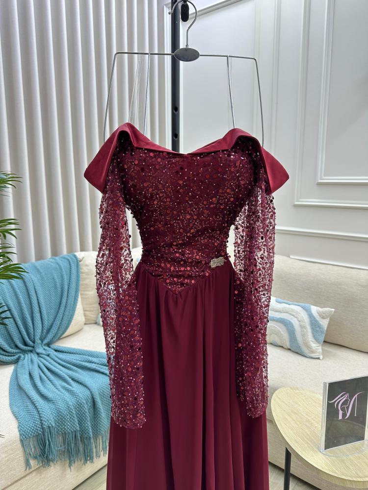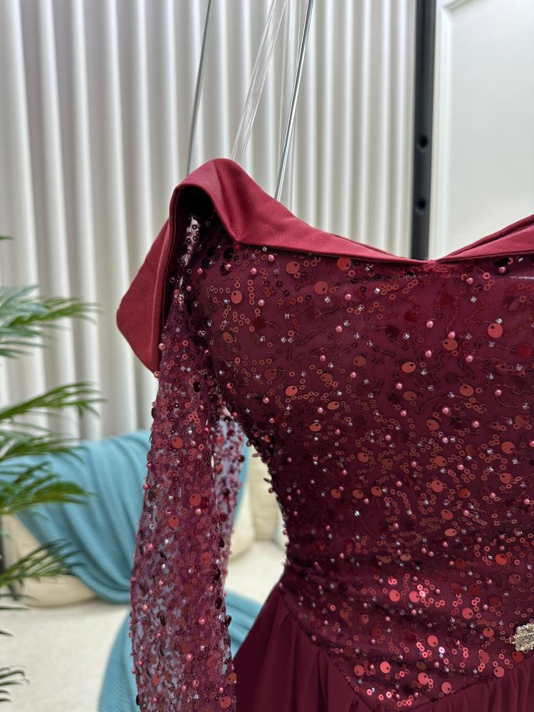 فستان سهره اللون برغندي الخامه جورجيت كلفه شك ترتر مع لو من متجر جوهره MA