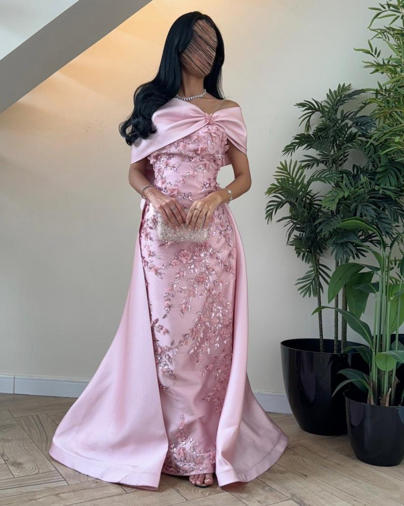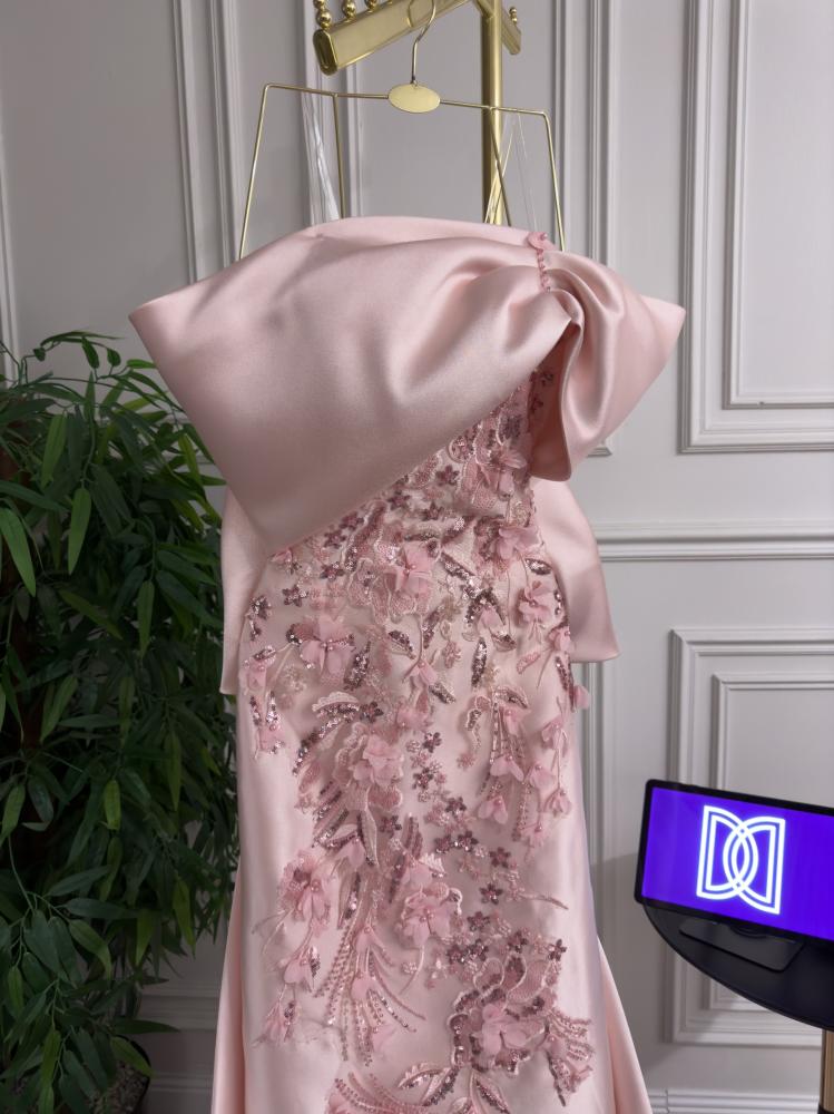 فستان سهره اللون زهري ميكادو تطريز كلفه تصميم قصة السمكه
