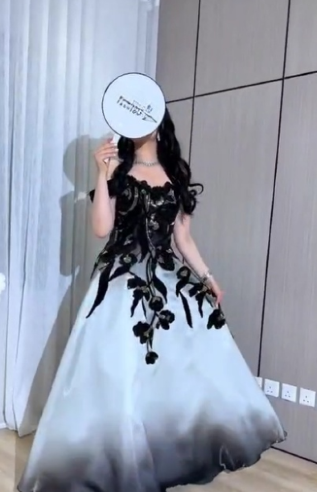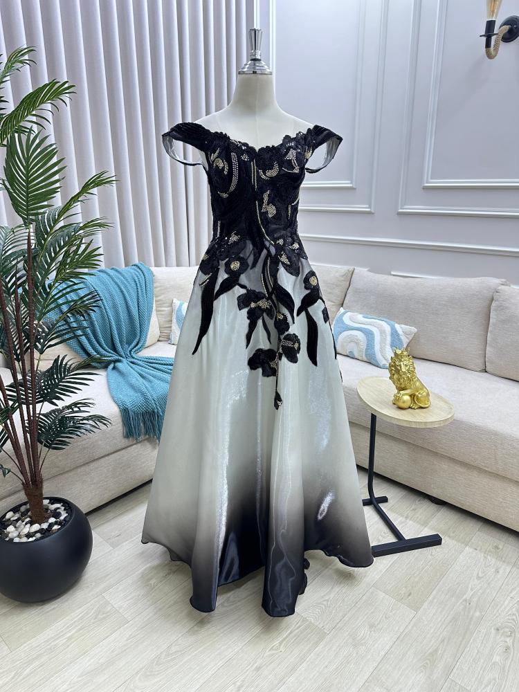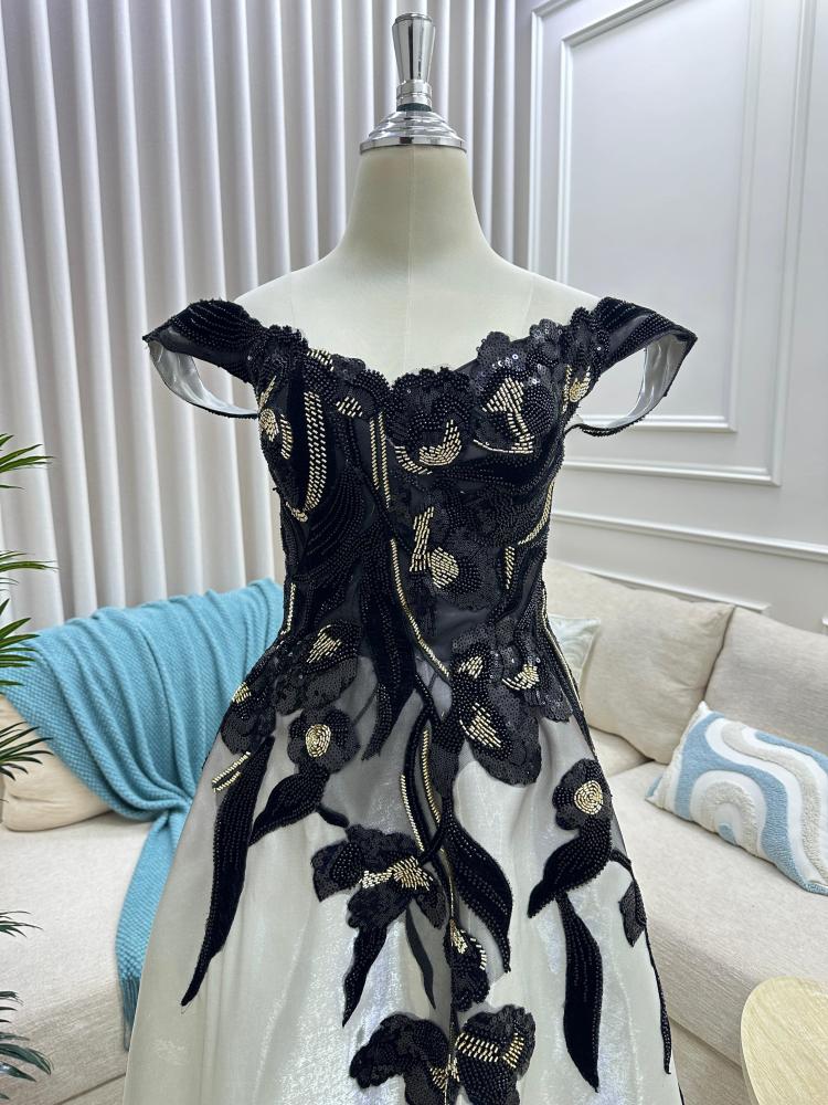 فستان سهره اللون اسود على ابيض شك. سهره. راقي. دبل كلوش من متجر جوهره TR