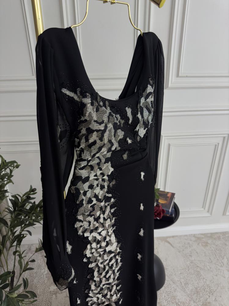 كولكشن العيدفستان سهره رآقيالقماش: كريب سكوبا اصلي بأكمام شيفون بتطريز كمبيوتر رآقيالمقاسات S M L Xl XXl XXXl
