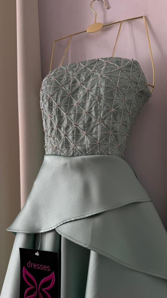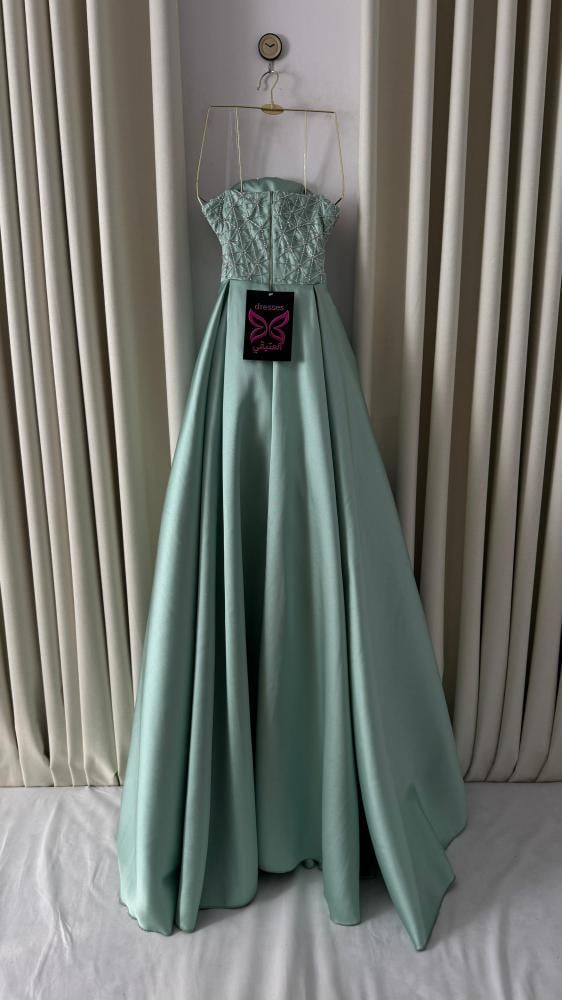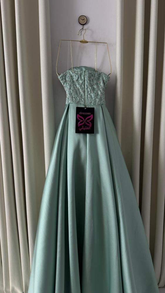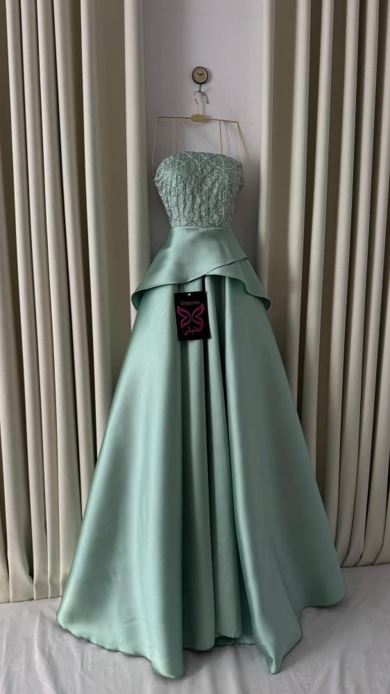 فستان سهره اللون تيفاني ميكادو الاصلي سادة كلوش 6 متر من متجر جوهره AT
