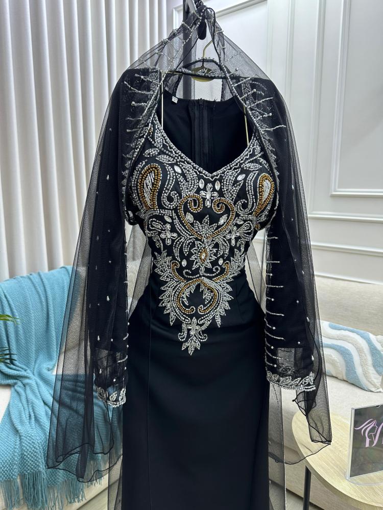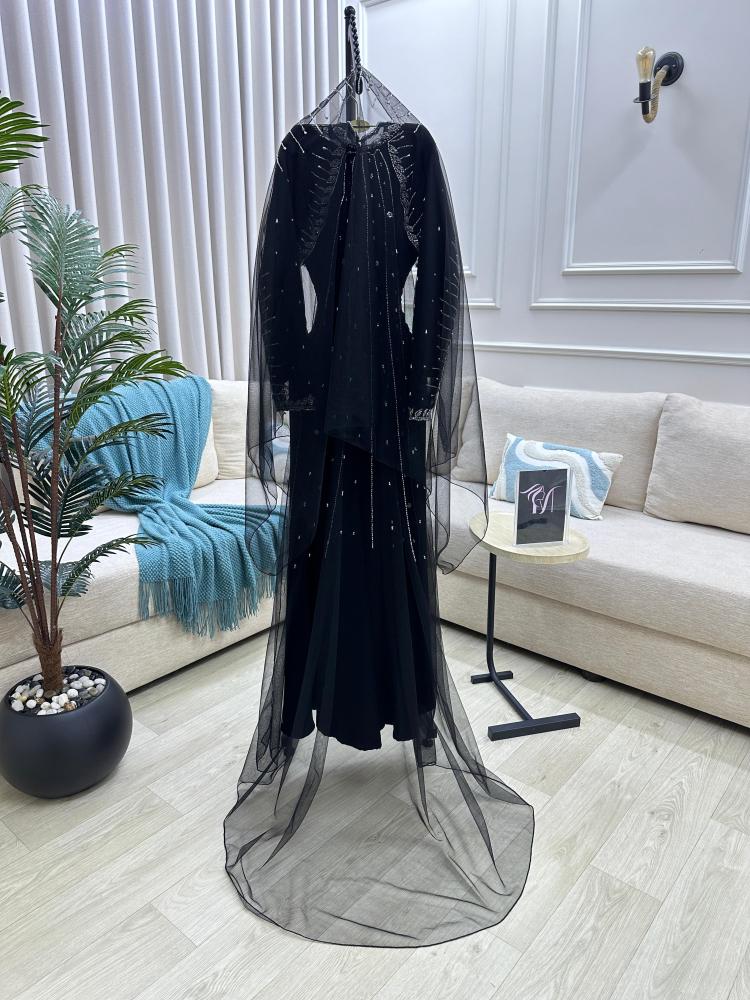 جلابية اللون اسود الخامه مخور ثلاث قطع قطع باربي تل تيواني تطريز يدوي راقي من متجر جوهره MA