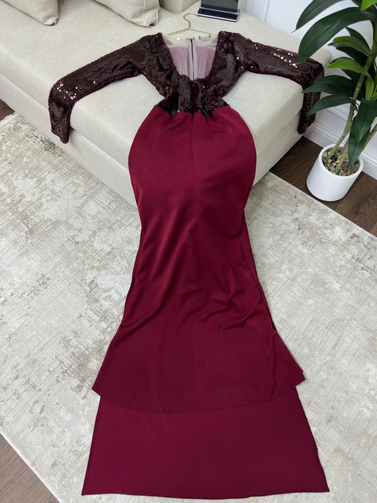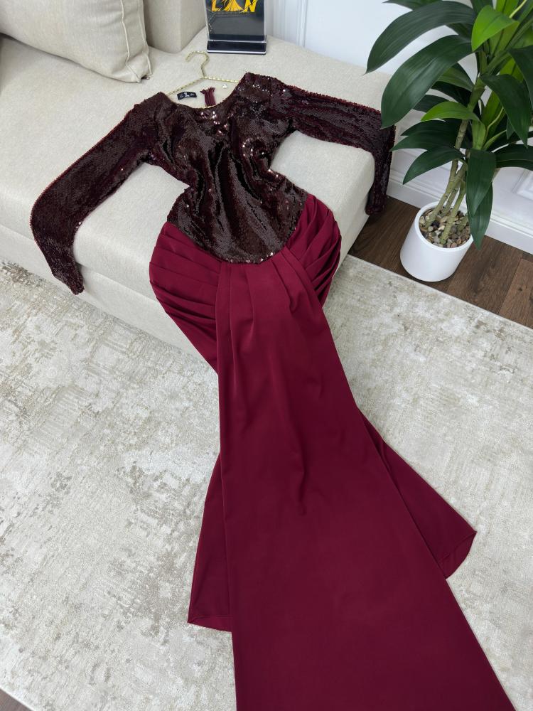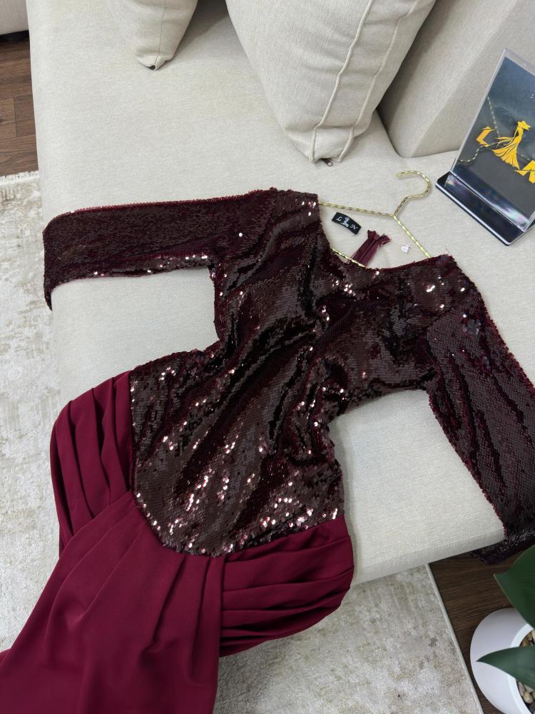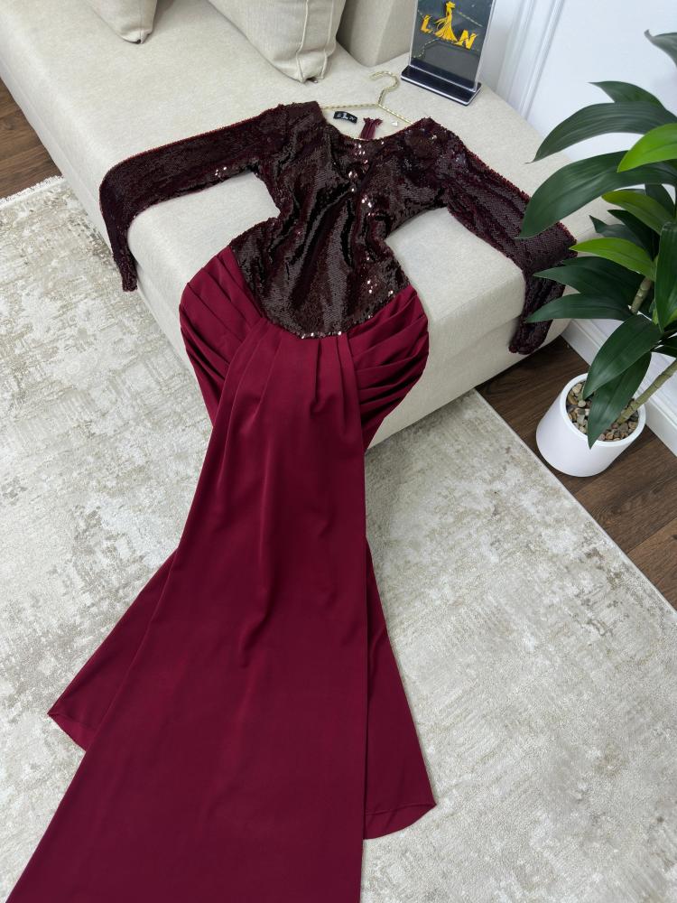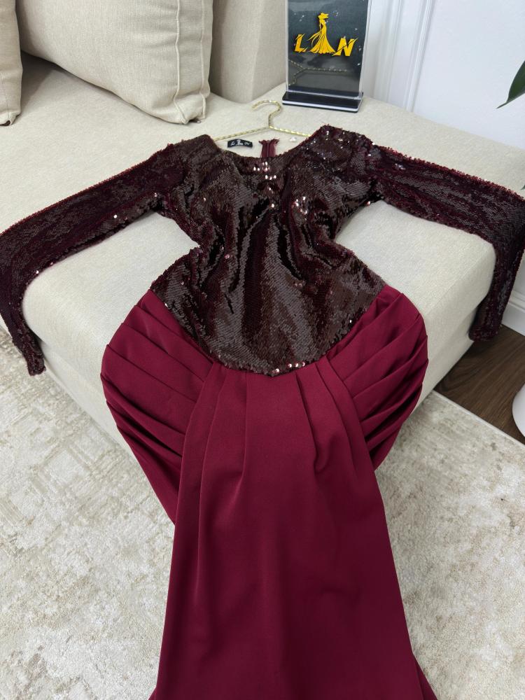 فستان سهره اللون برغندي الخامه:تفته على برقندي اصلي راقي LV
