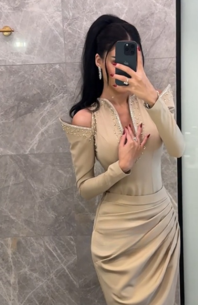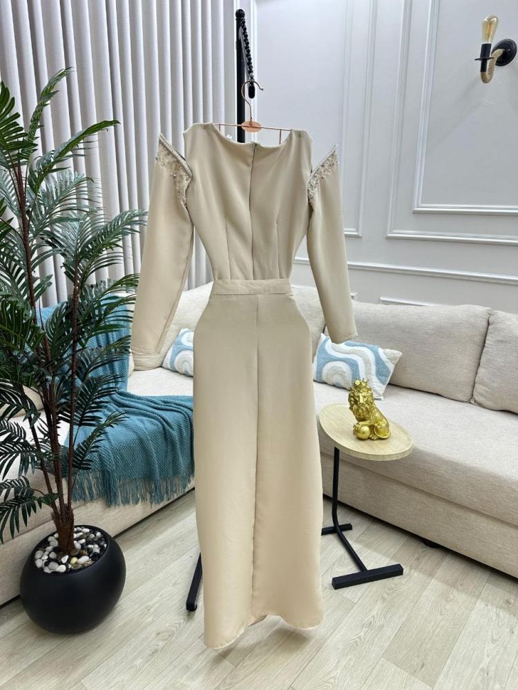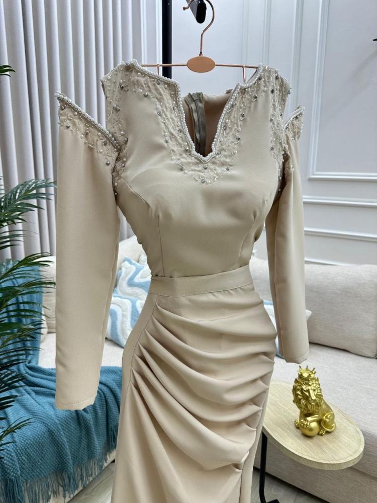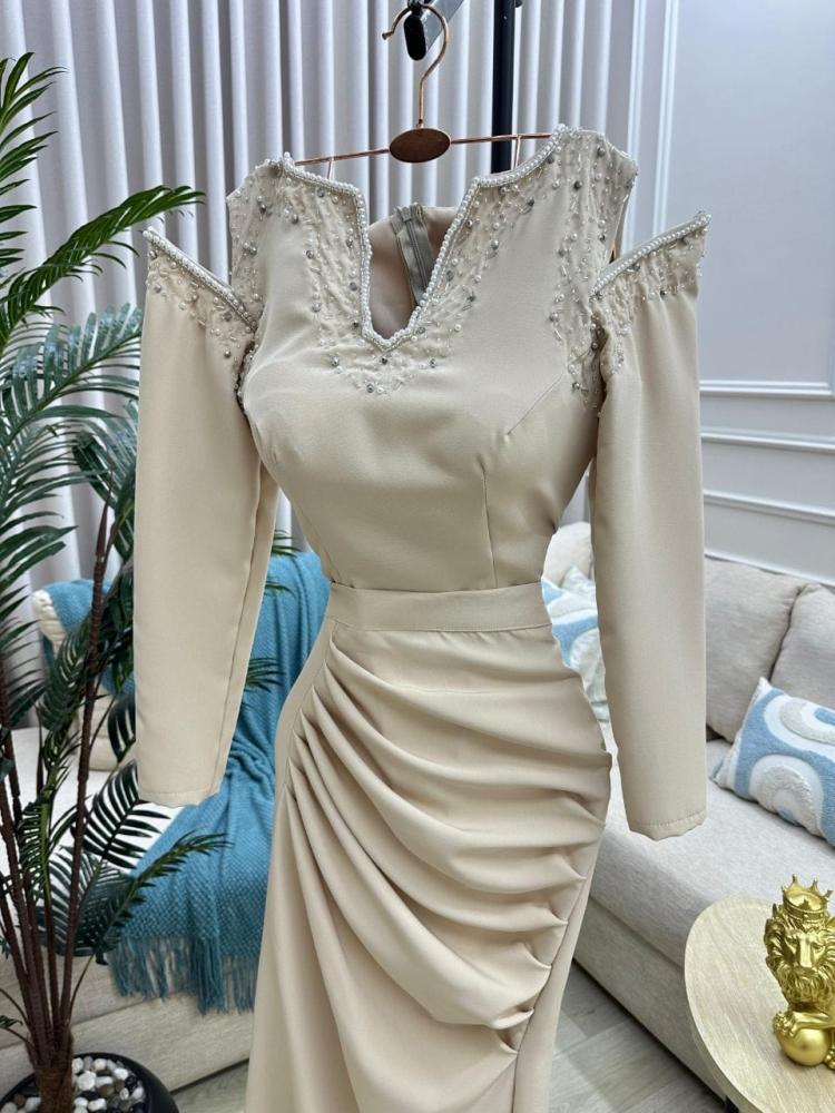 فستان سهره اللون بيج باربي اصلي درجه اولى بتطريز يدوي راقي TR