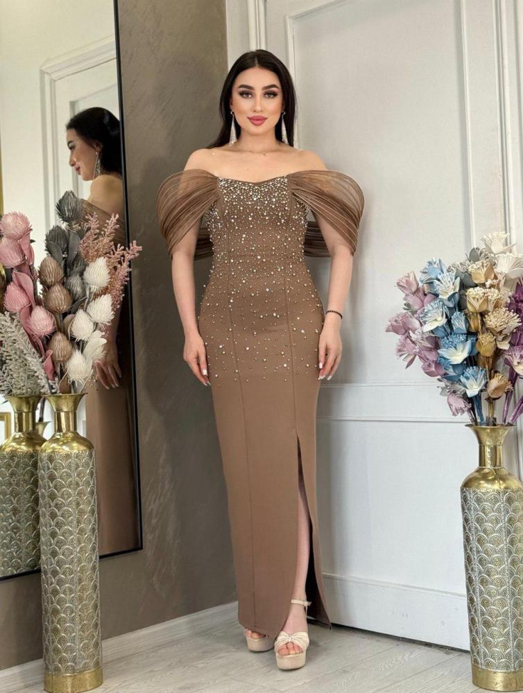 فستان سهره بني الخامه باربي لولو وفصوص من متجر جوهره D