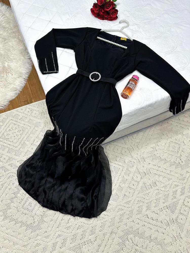 فستان اسود مزين بالخرز و الفصوص الخامه لكرا