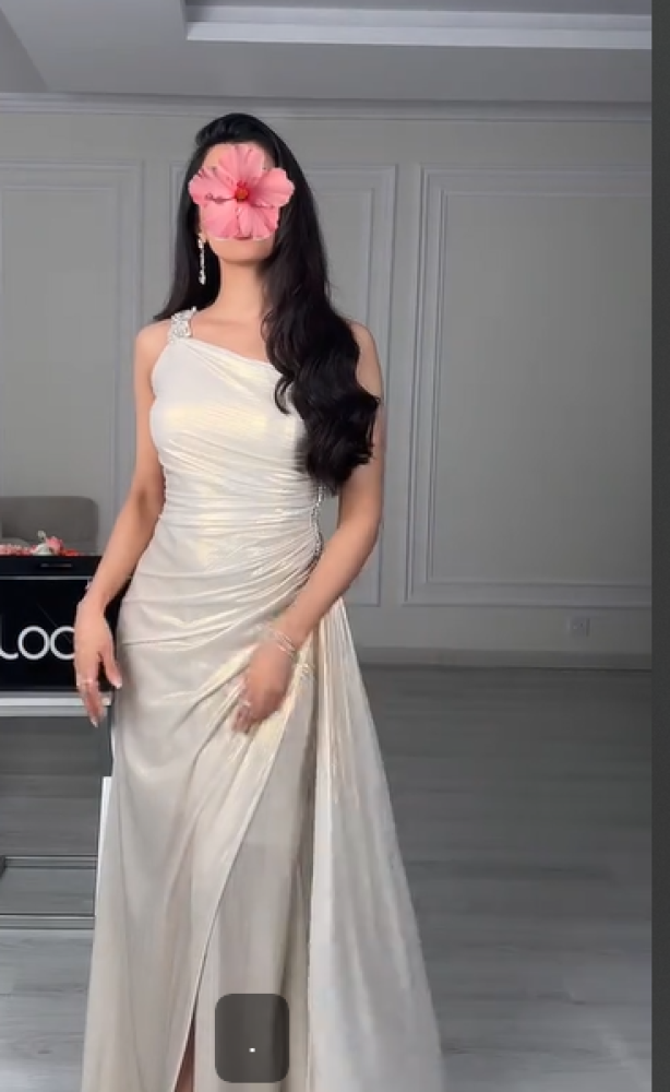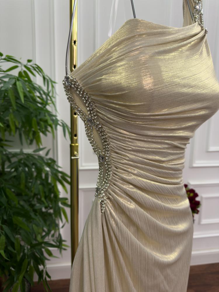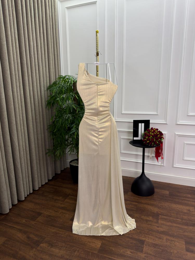 فستان سهره اللون بيج فاتح لمعه استرتش من متجر جوهره MN