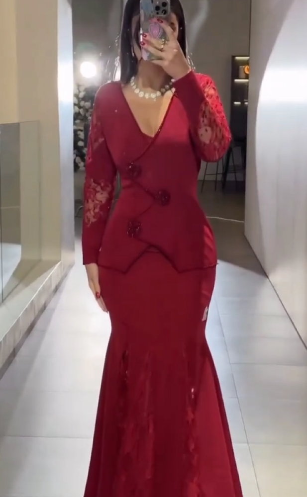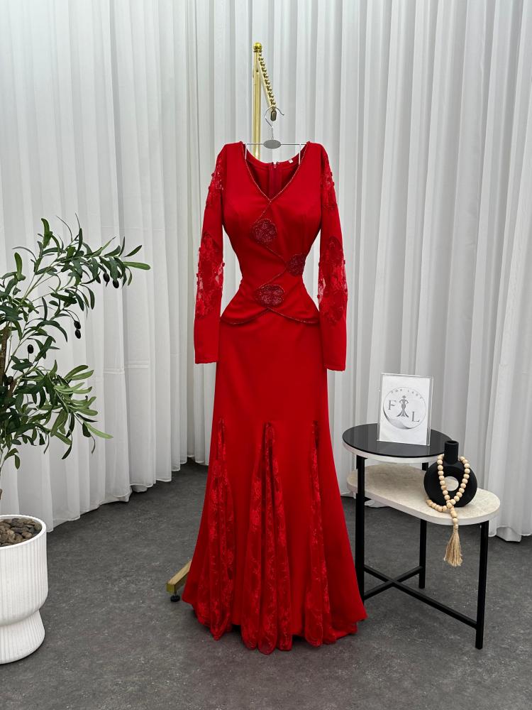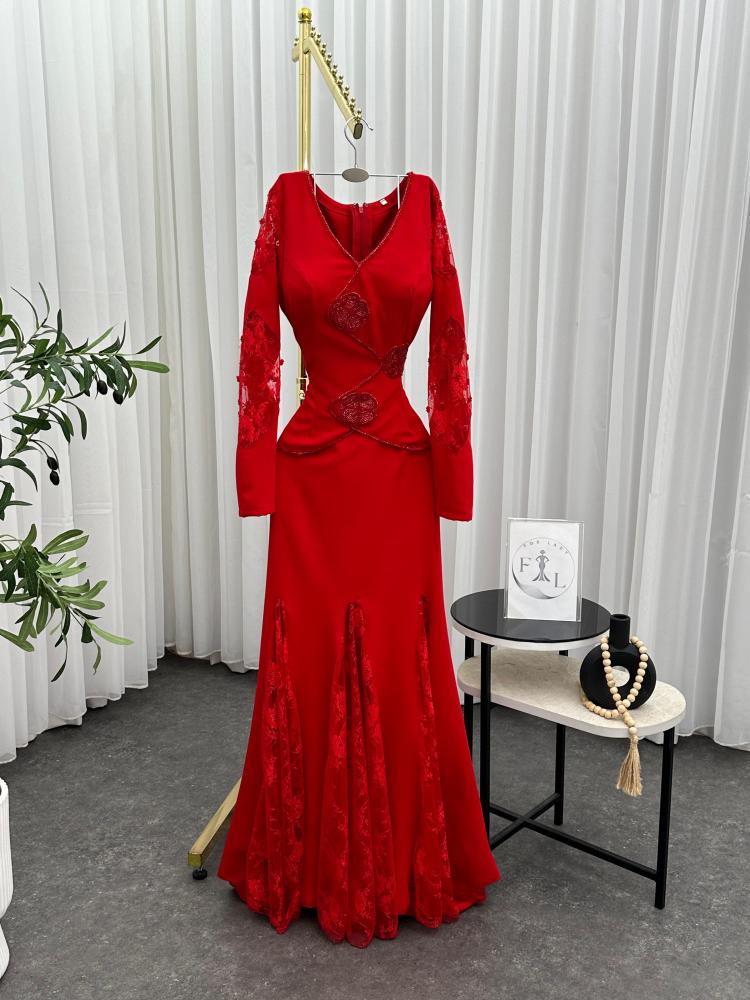 فستان اللون احمر نوع القماش باربي دانتيل تطريز يدوي من متجر جوهره FR