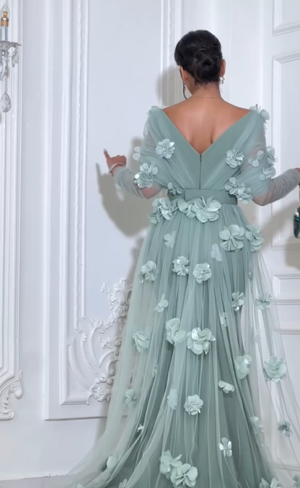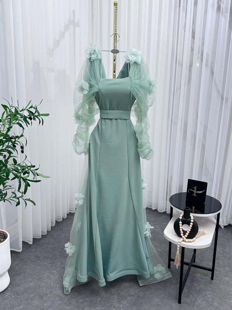 فستان سهره اللون تيفاني باربي مع تول من متجر جوهره NO