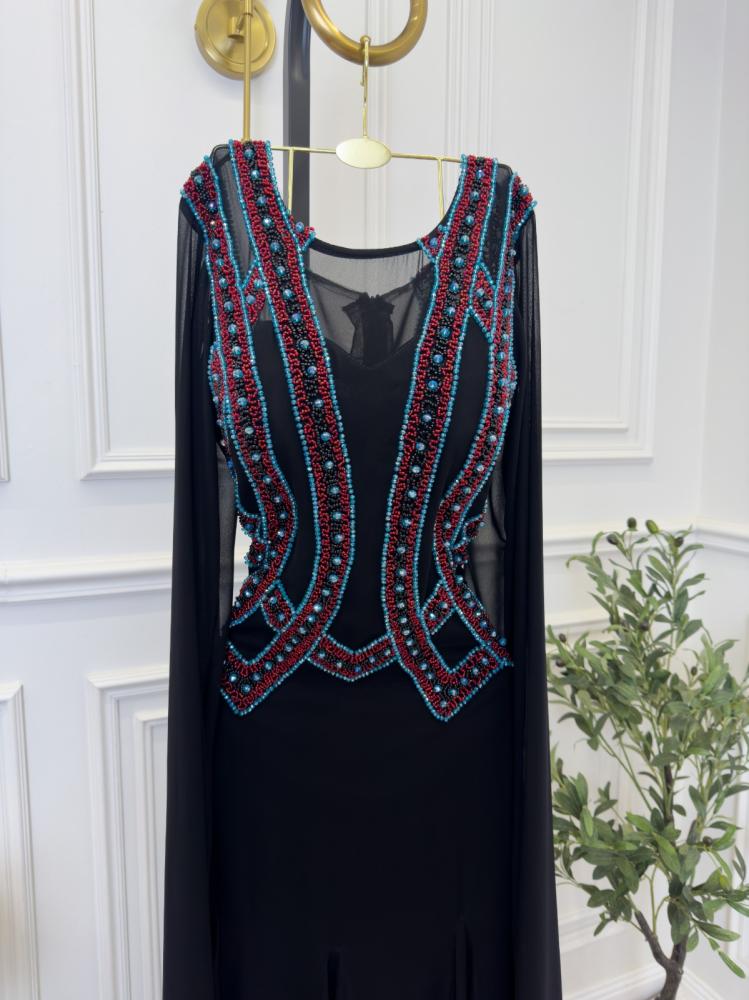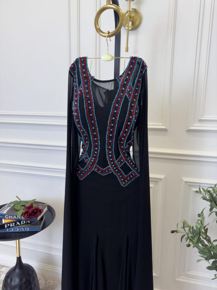 فستان اسود شيفون جورجيت بتطريز يدوي راقي