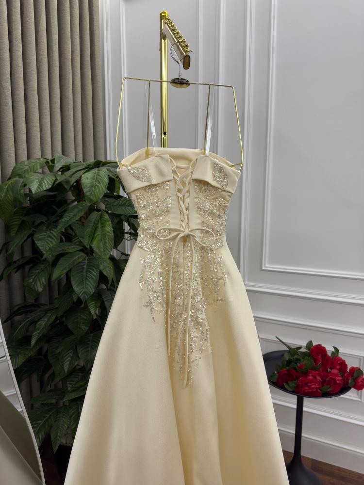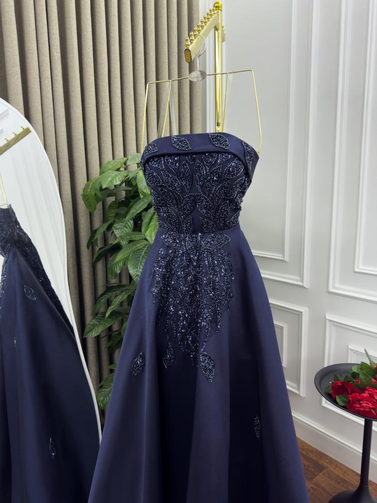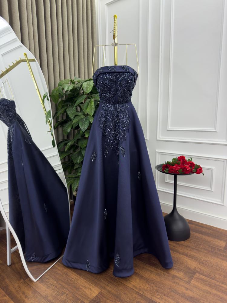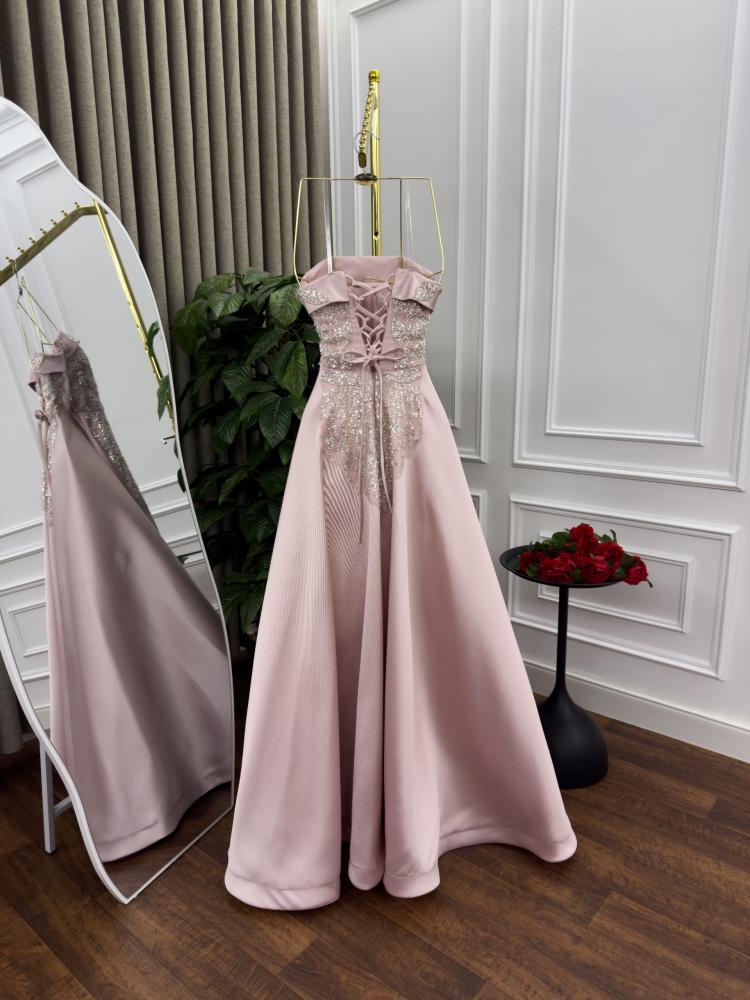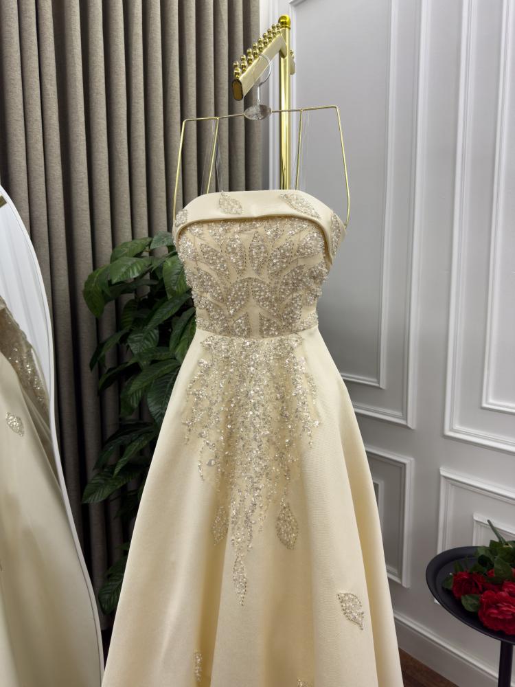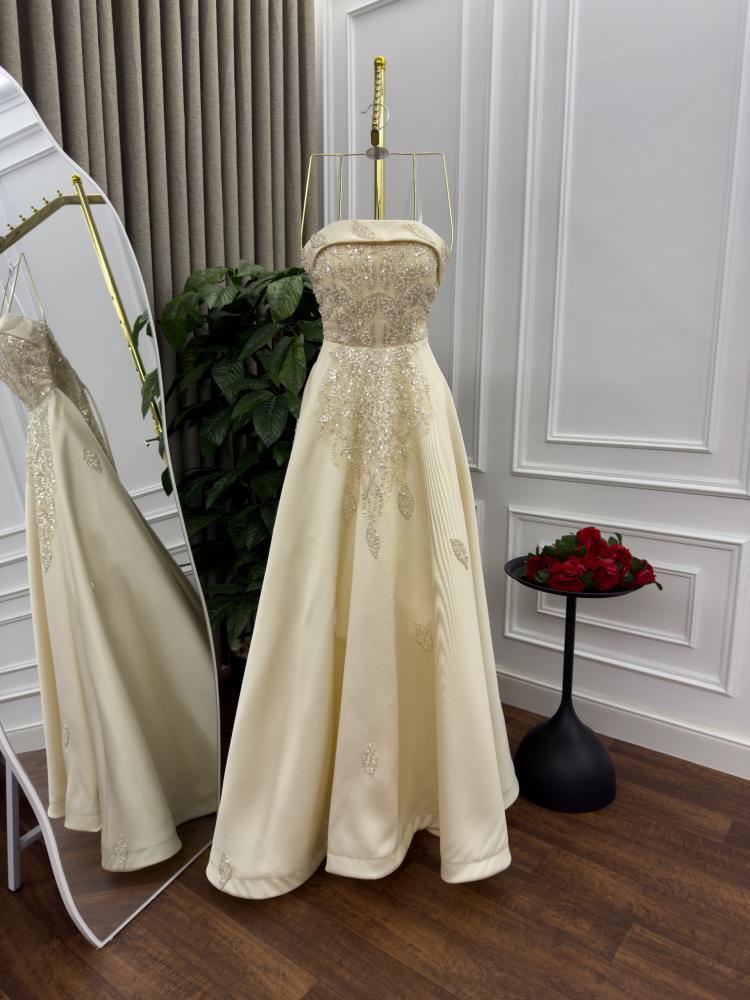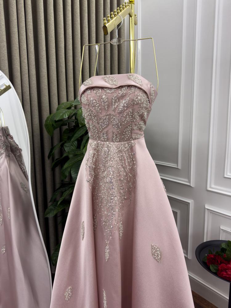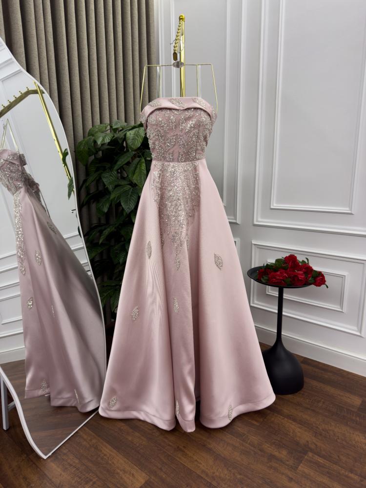 فستان سهره فخم ميكادو مطرز خرز بيج كحلي وردي