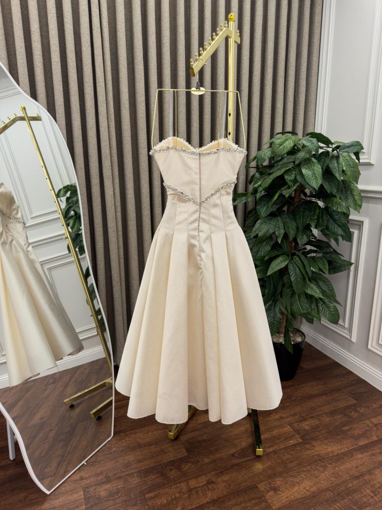 الخامه : تفته روسي ميد فستان مزين بالكريستال في الصدر و الخلف مع كسر كلوشالتمدد: غير قابل للتمدداللون : ابيض - بيجالمناسبه : -سهره- كولكشن العيدقصه العنق :هالف شولدرالمقاسات : S-M-L-XL-XXL-XXXL