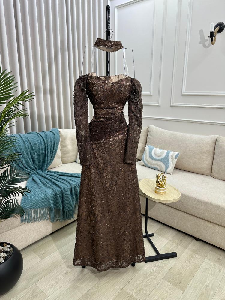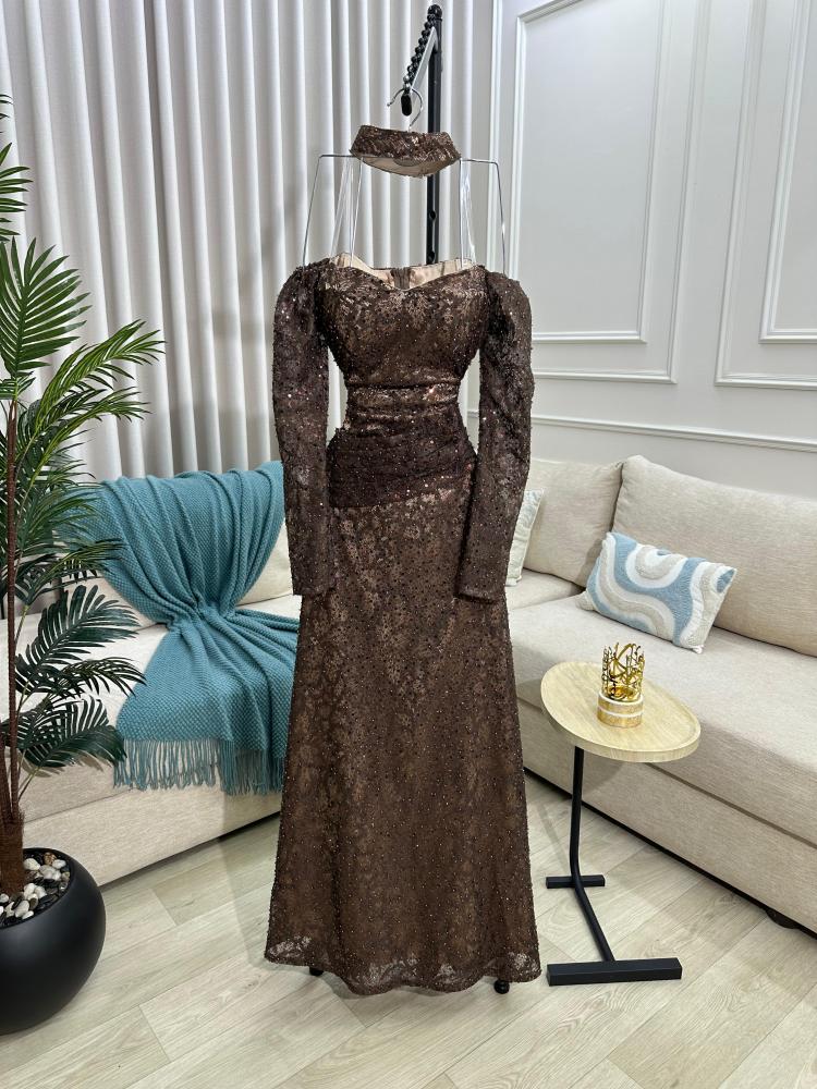 فستان سهره اللون بني قماش سهره من متجر جوهره DN