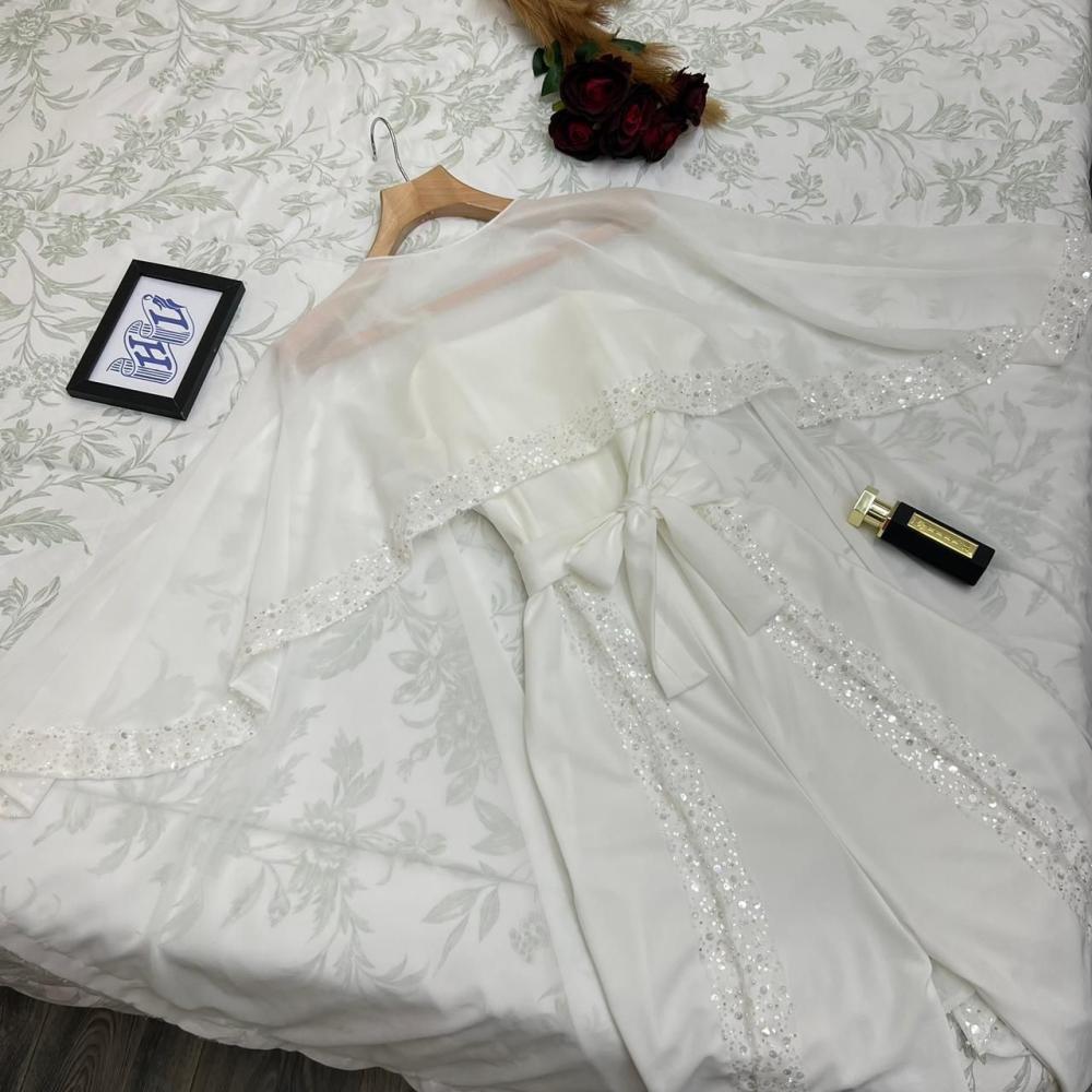 جمبسوت لون ابيض - لون اسود الخـامة كريب + شيفون جورجيت من متجر جوهره