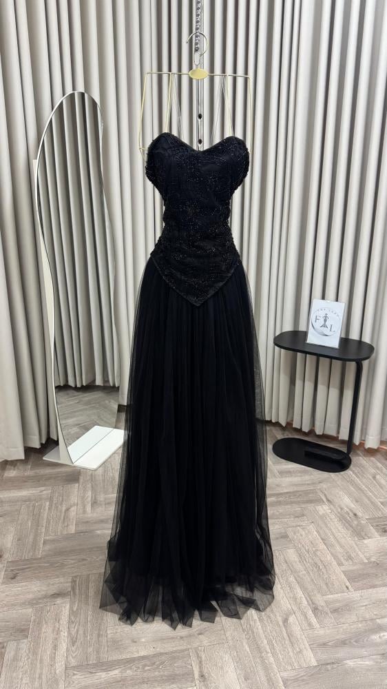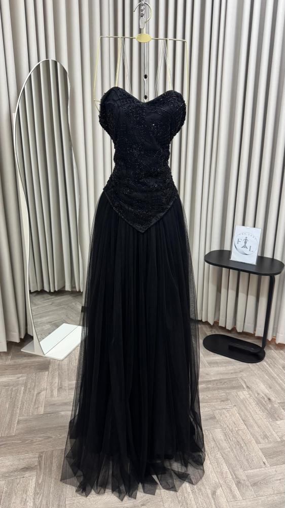 فستان سهره اللون اسود تل على تفته من متجر جوهره FR