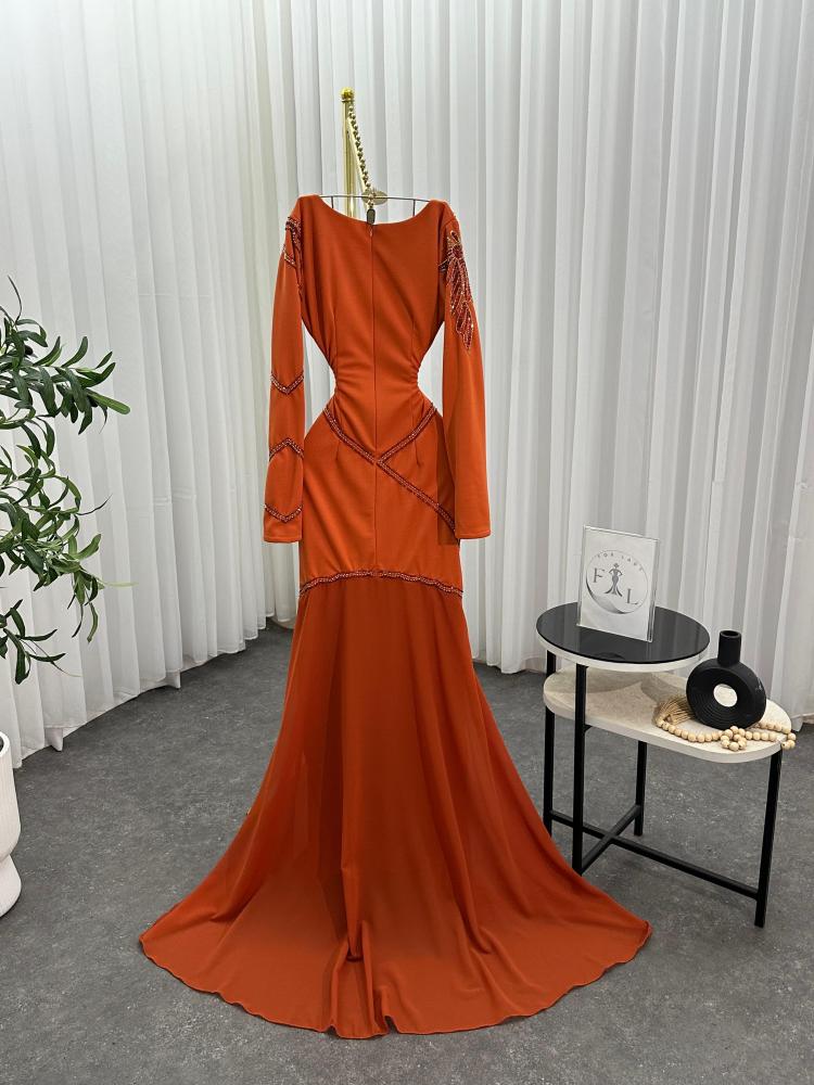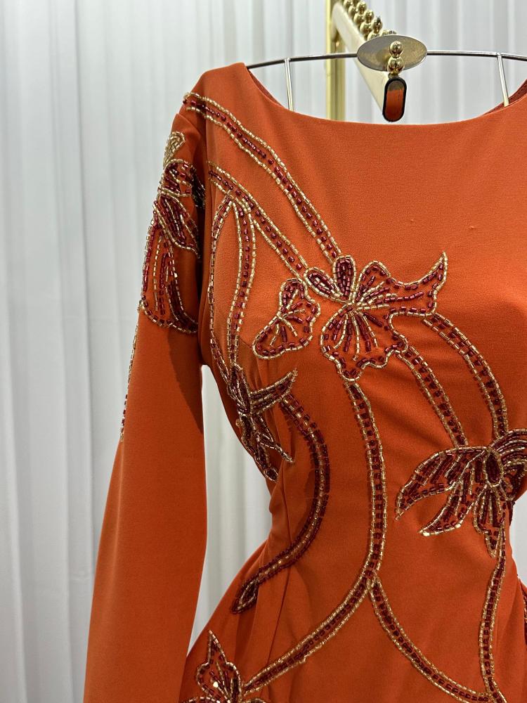 فستان سهرة اللون برتقالي نوع القماش باربي تطريز يدوي من متجر جوهره FR