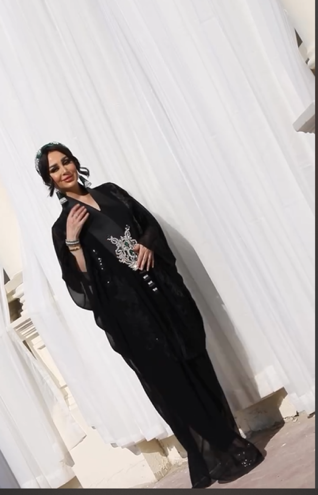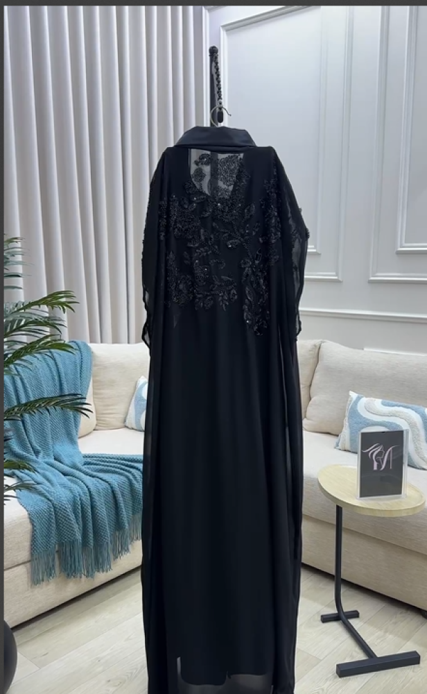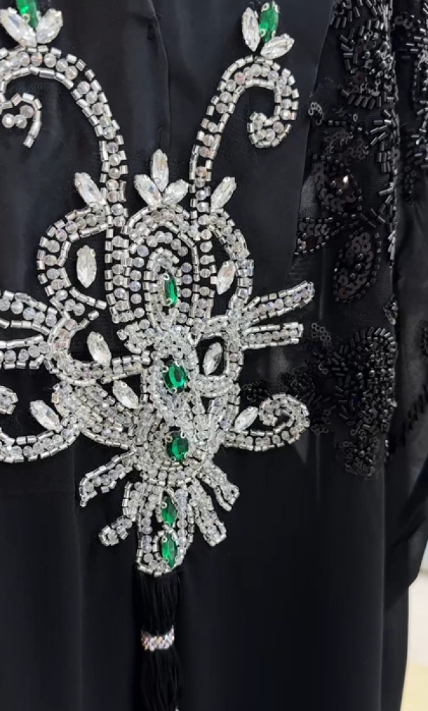 جلابية اللون اسود بطانه كريب استرتش جورجيت +تطريز يدوي كلفه شك من متجر جوهره MN