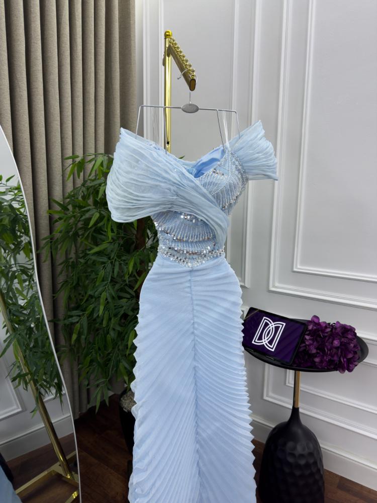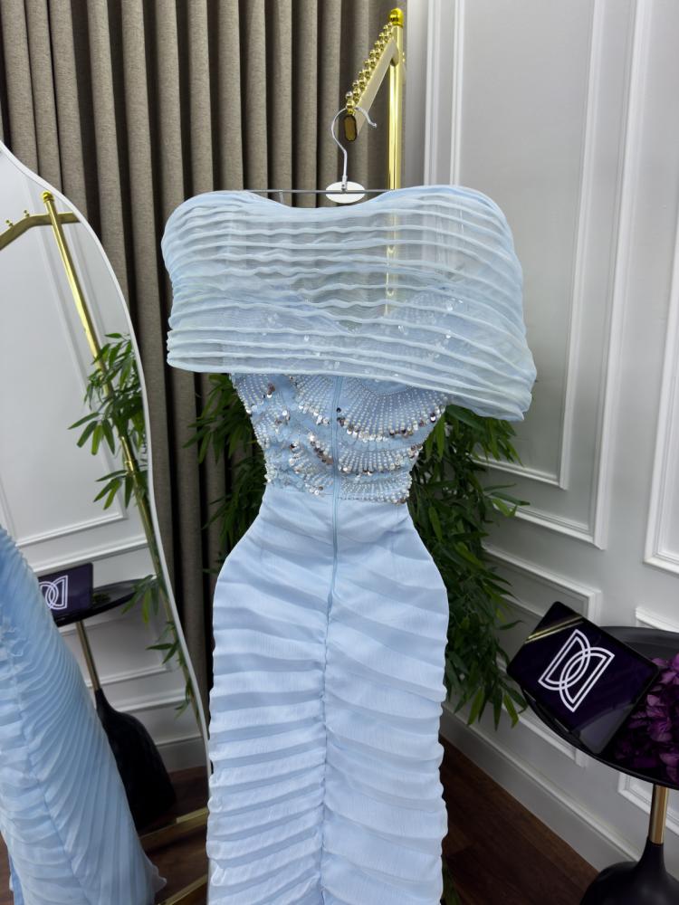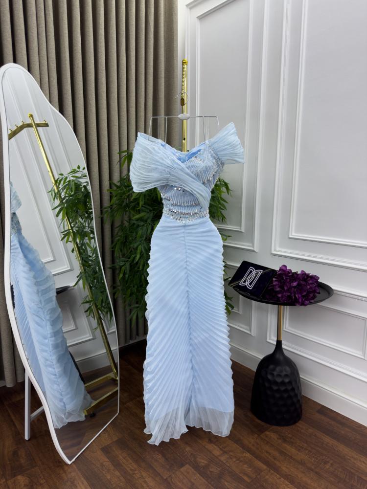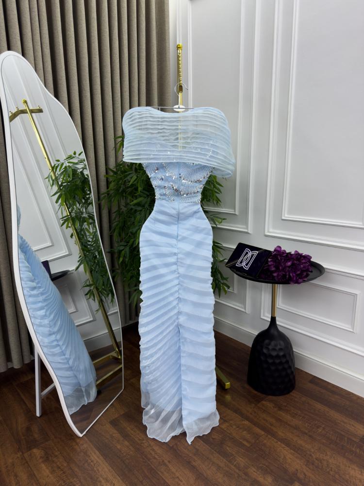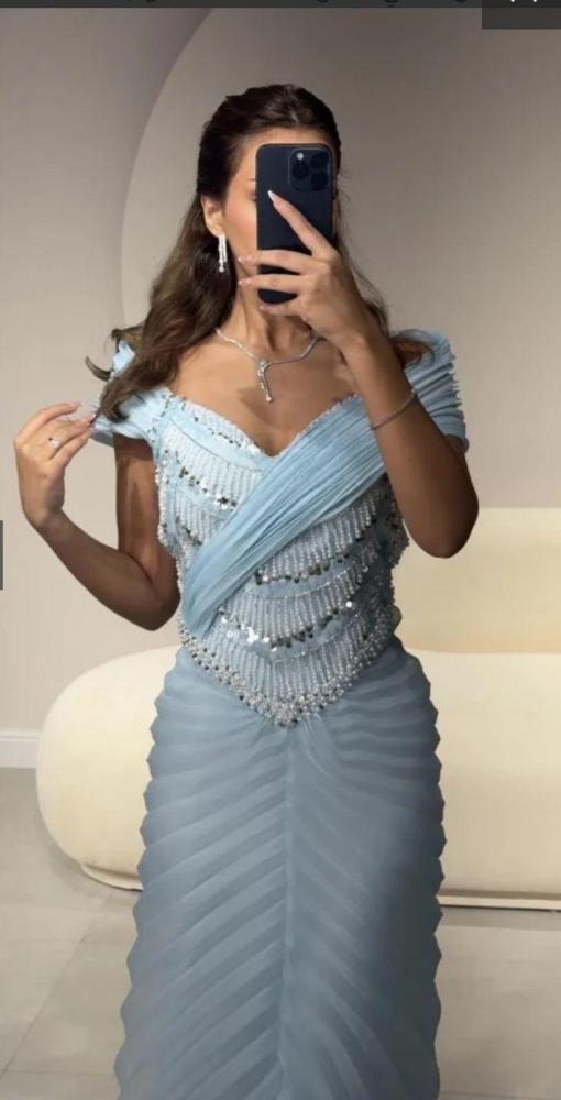 فستان سهره اللون سماوي جازاربليسا كلفةتطريز وتر من متجر جوهره D
