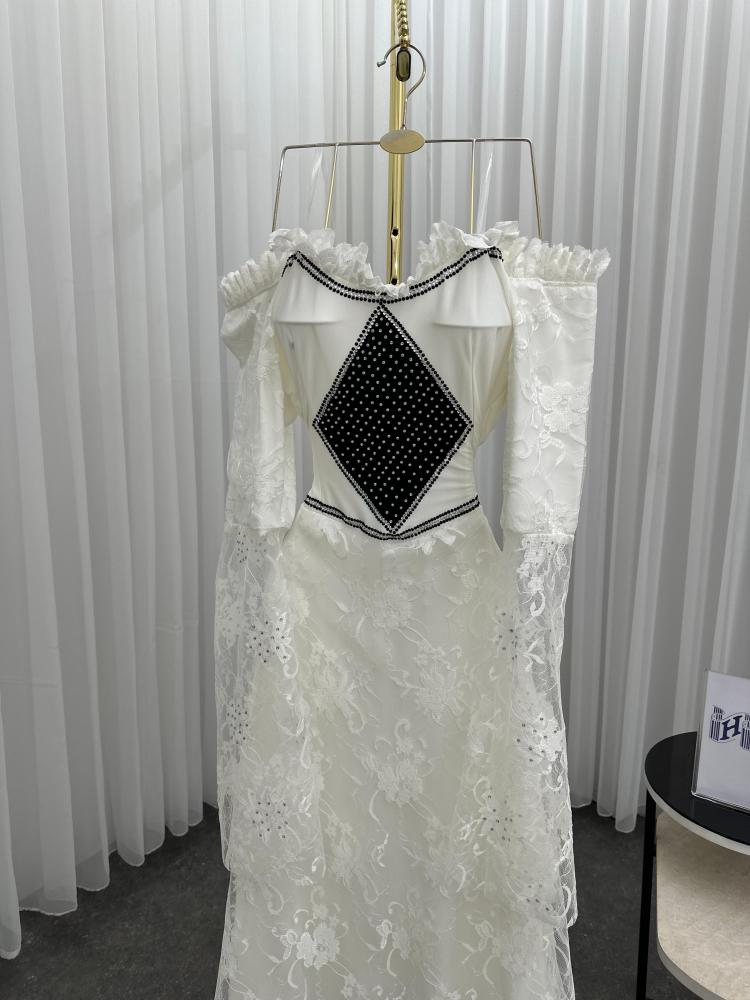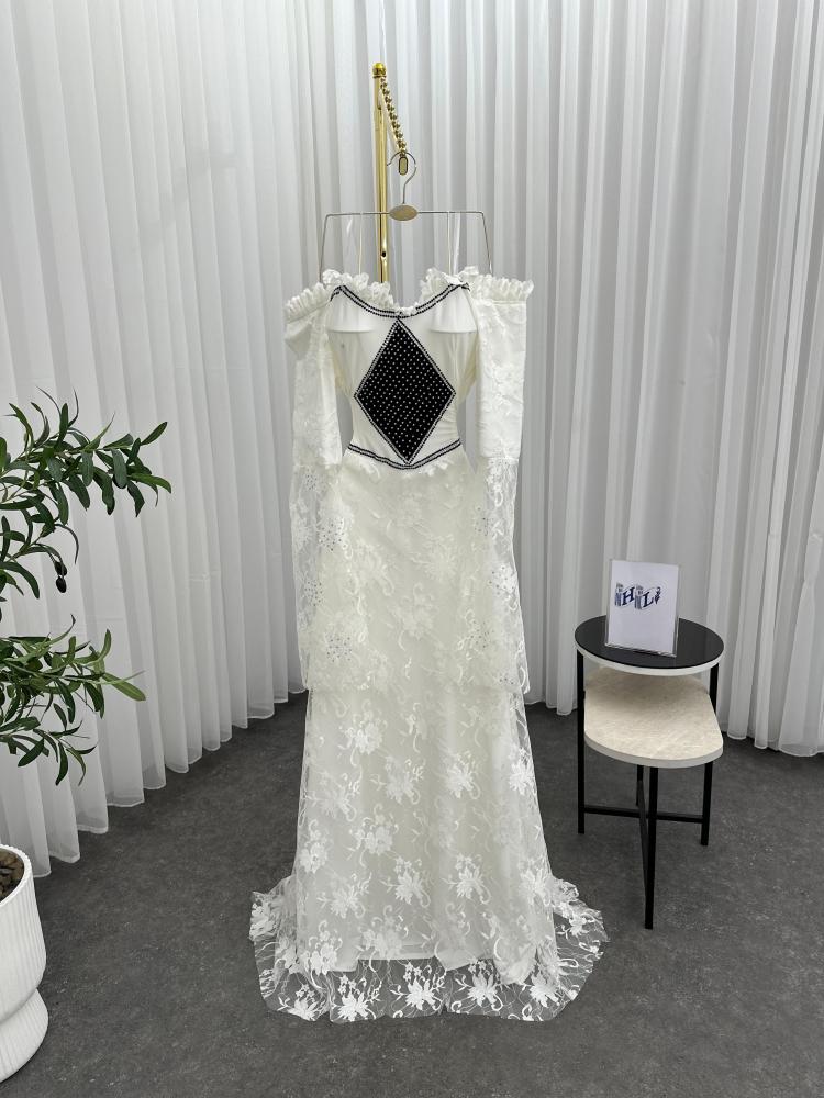 فستان اللون ابيض الخـامة دانتيل الأصلي فصوص من متجر جوهره LV
