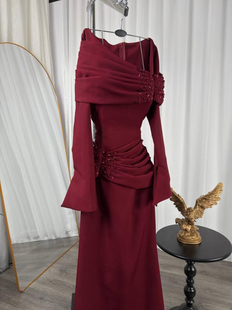 فستان سهره اللون عودي خامه باربي تطريز خرز يدوي بطانه من متجر جوهره QN
