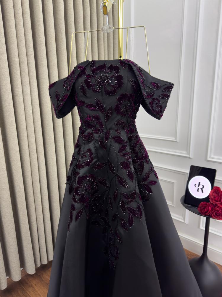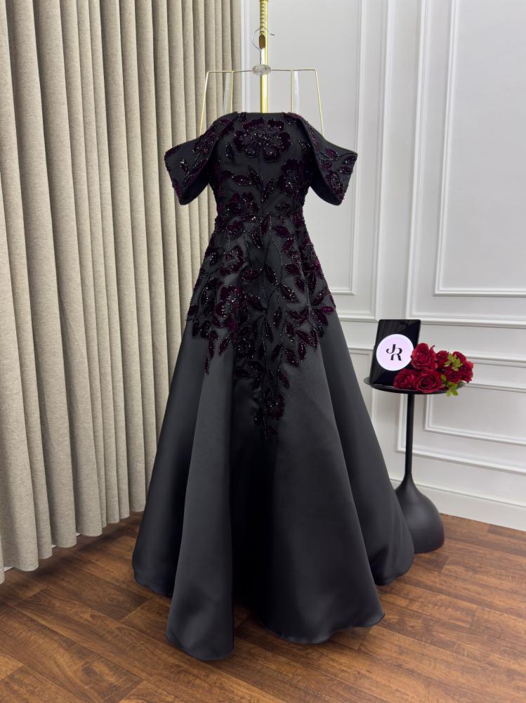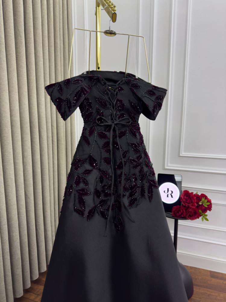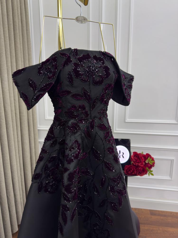 فستان سهره اسود تطريز راقي الخامه تفته ميكادو