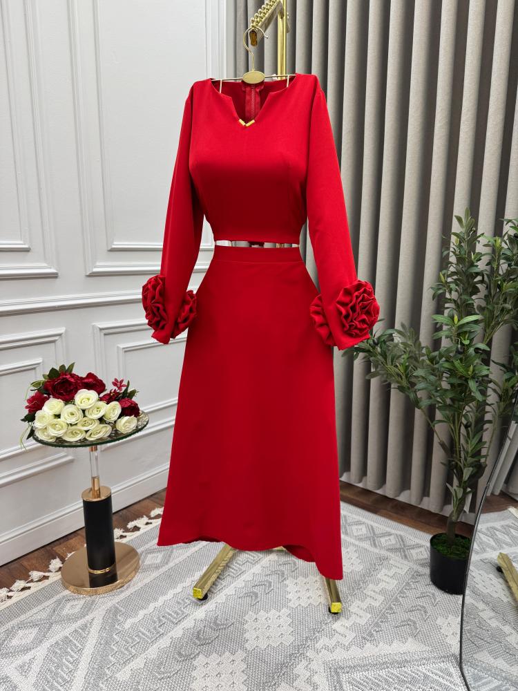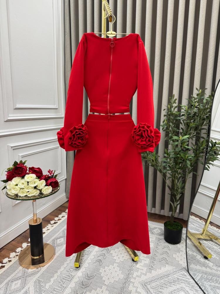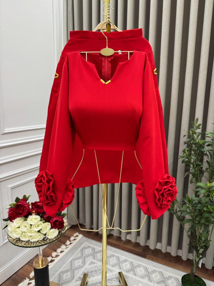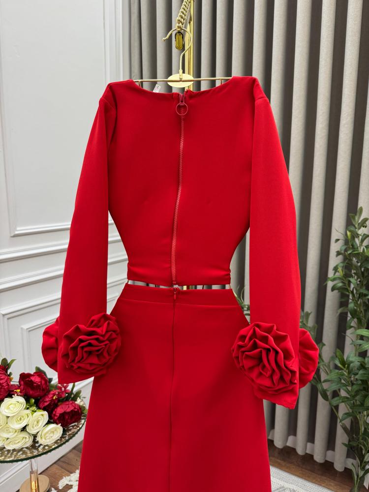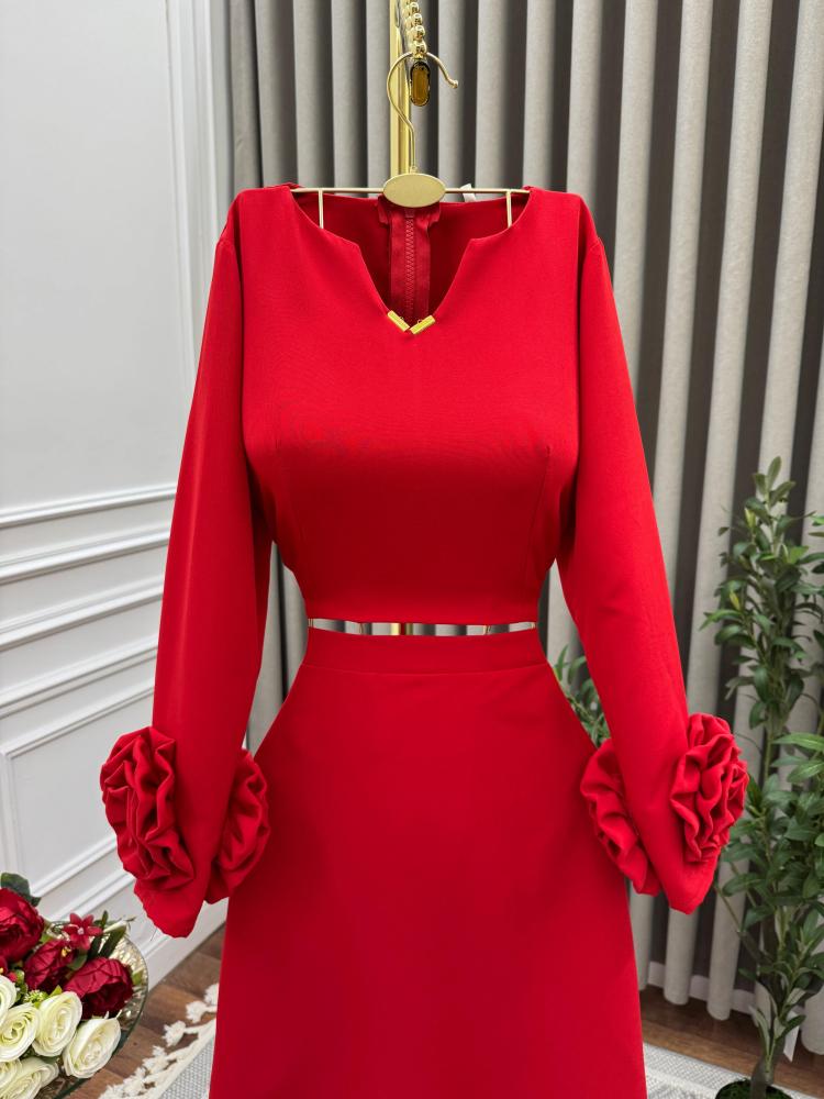 فستان طقم ناعم اللون قطعتين تنوره وبلوزه خامه باربي